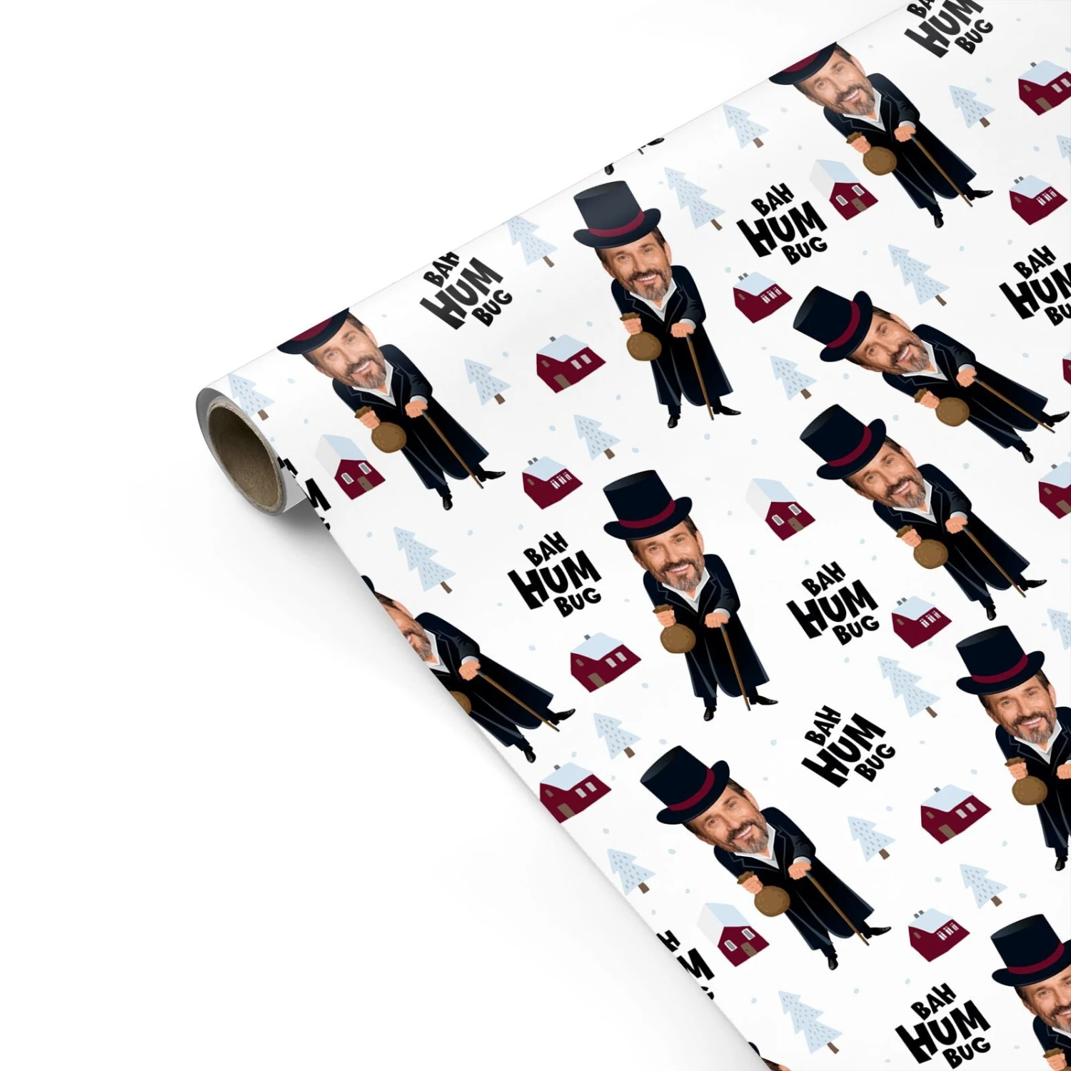 Our Bah Humbug Photo Face Personalised Christmas Wrapping Paper is a great design that is to be customised with a photo of a face. Simply upload your picture and our clever little tool does all the hard work for you, generating a preview in seconds. Perfect for any Christmas Scrooge, our Bah Humbug wrapping paper is sure to make them laugh this Christmas.