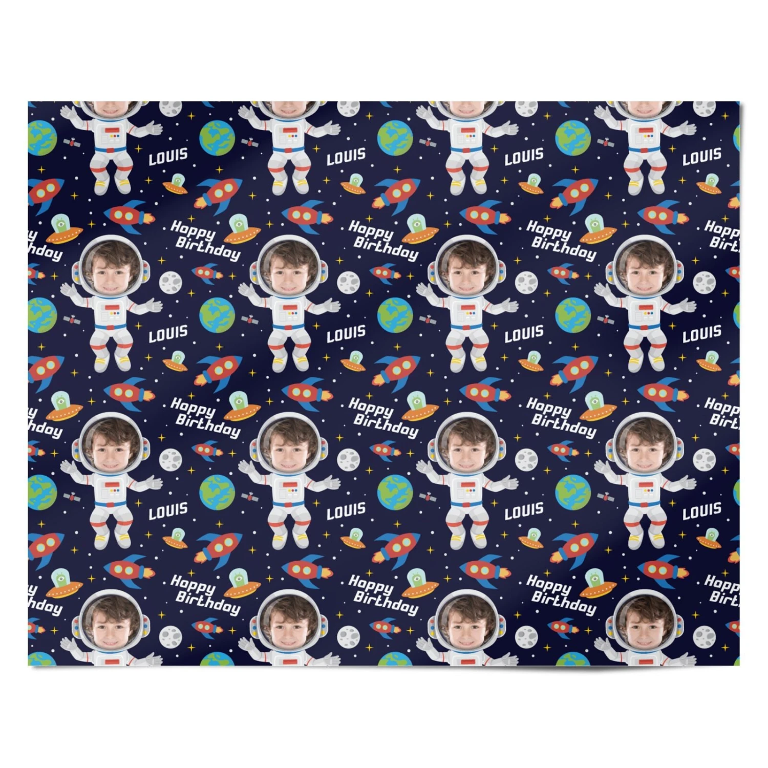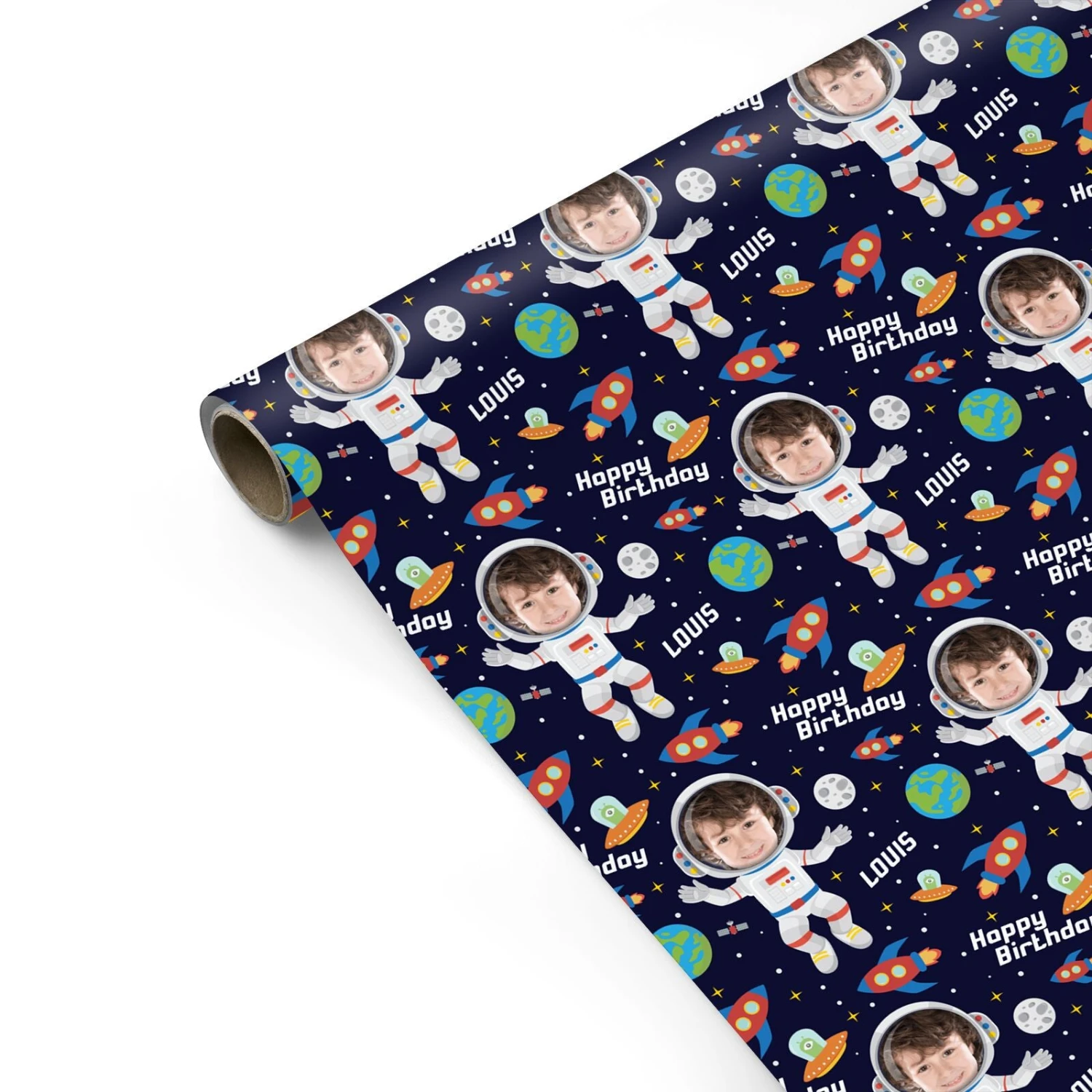 Blast off to the stars with this out-of-this-world personalised astronaut wrapping paper. Imagine their delight as they unwrap a gift swathed in their own smiling face, soaring through the cosmos. This one-of-a-kind paper adds a playful, personal touch that will make any present feel extra special.