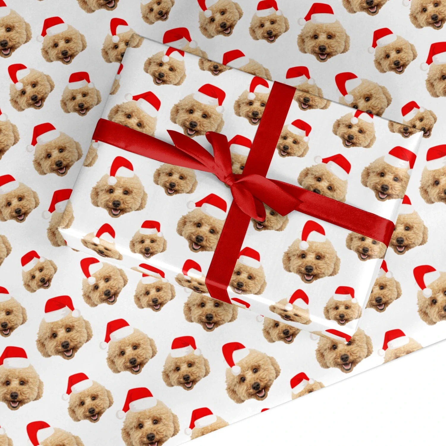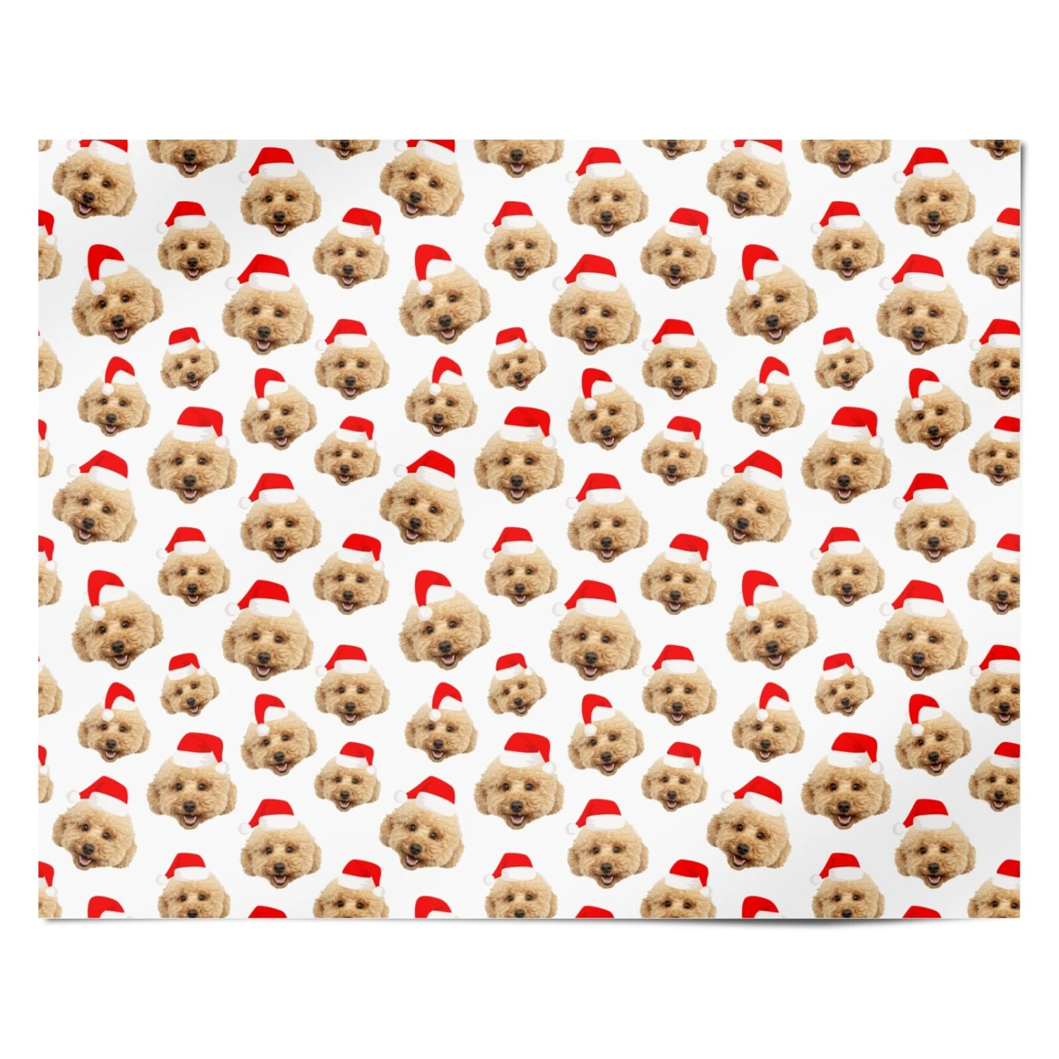 Personalise this Christmas Dog wrapping paper with a photo of your dog and we can take care of the rest. Our tool automatically cuts around the face of the dog and provides an instant preview. Featuring cute Santa Dogs patterned against a contrast background. Perfect for any Christmas gathering.