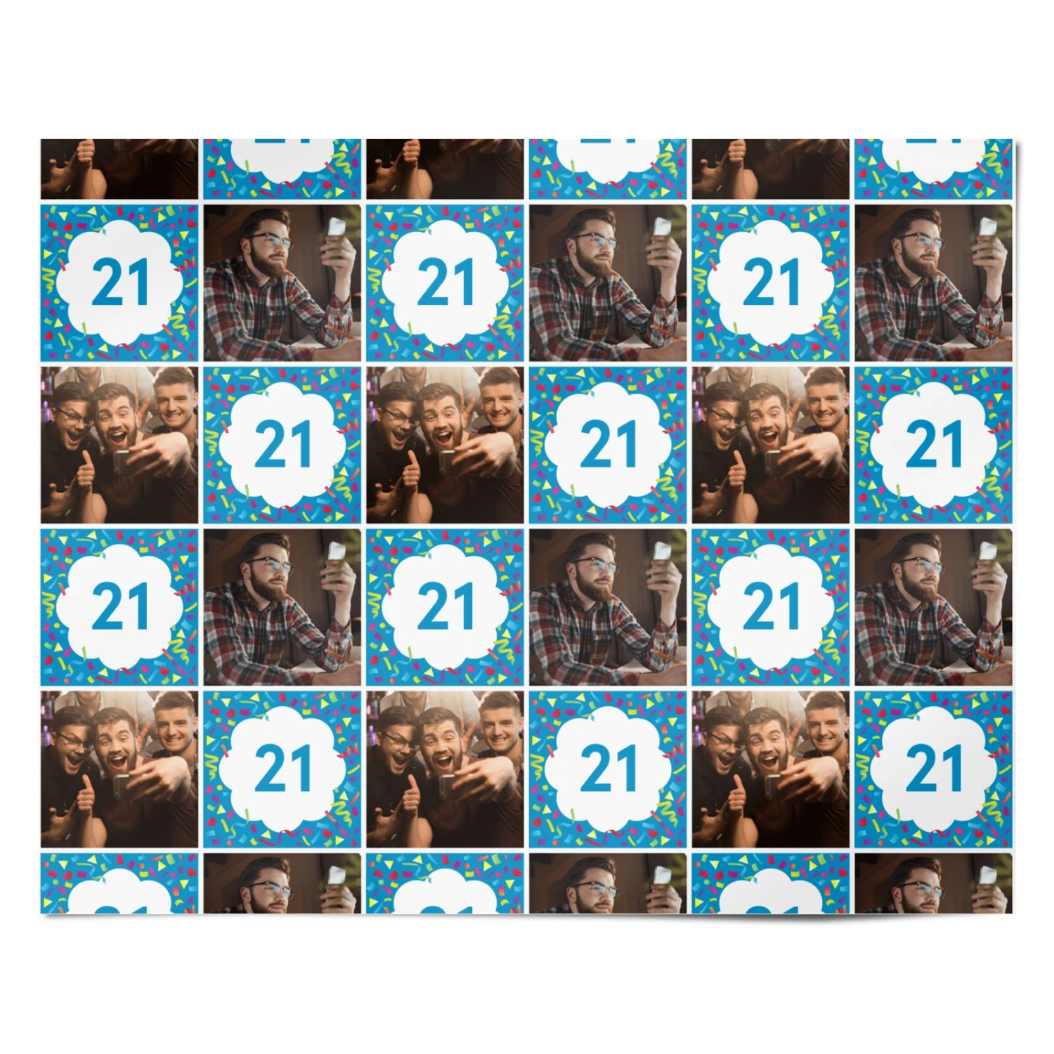 Introducing our Custom Birthday wrapping paper, featuring a grid style pattern with a customisable age and photos. Simply upload your favourite photos or selfies with any age and preview in our customiser tool. Find our full range of Birthday wrapping paper for alternate styles and photo layouts.Â