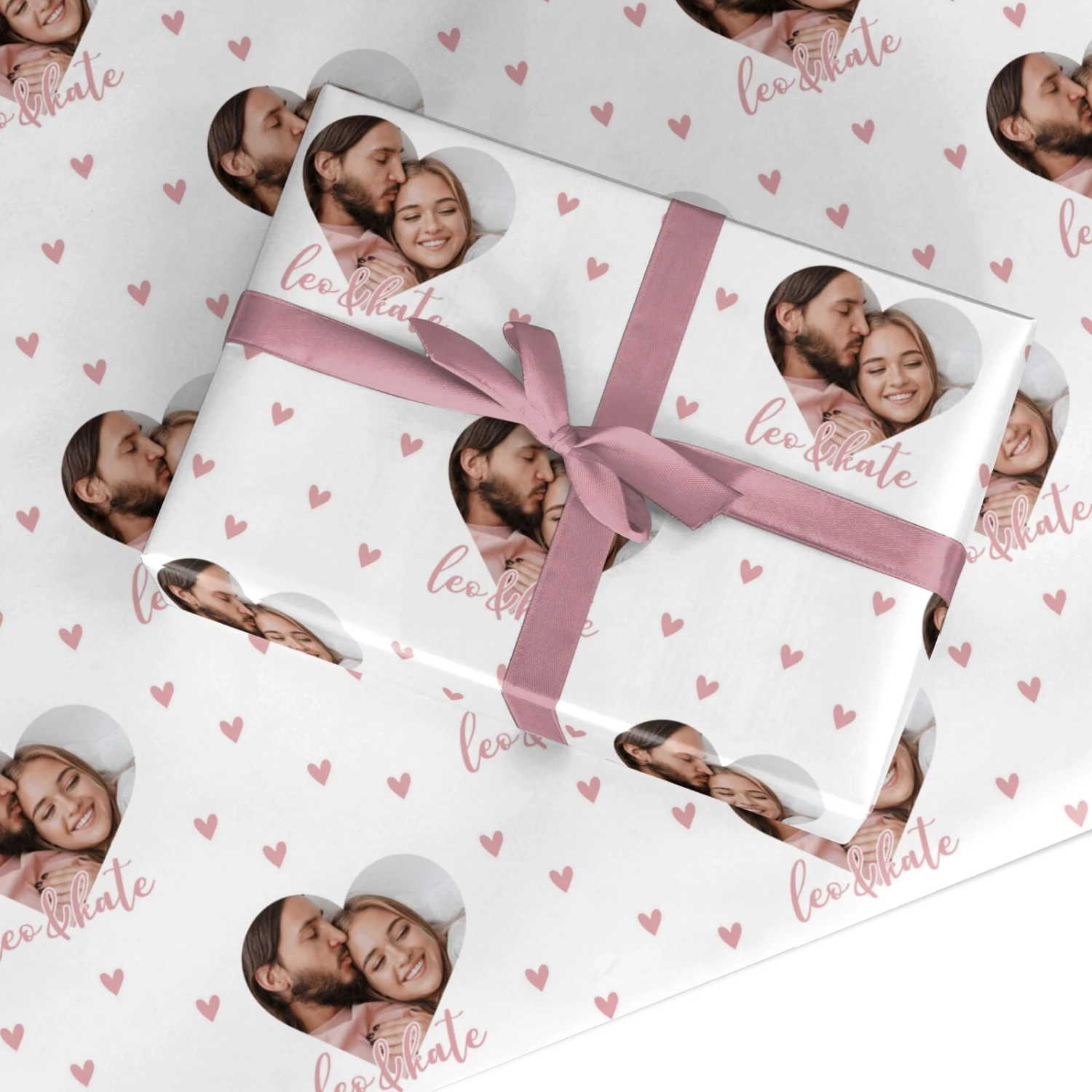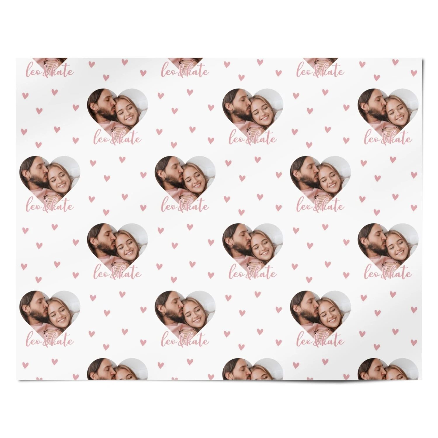 Our Custom Couples Photo Wrapping Paper is a cute single photo upload design, with your picture shaped into a love heart. The design also features a little pink heart decal, and two personalised names. Ideal for Valentine’s Day or for any couple.