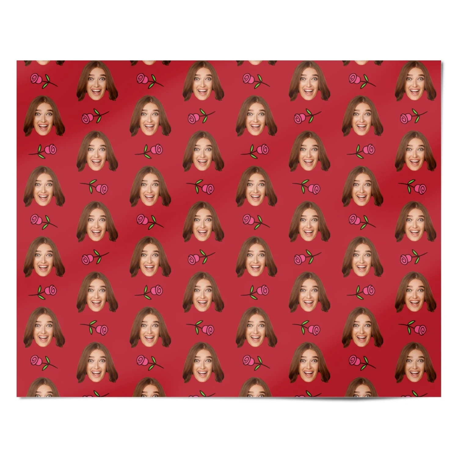 This personalised Valentine’s Day wrapping paper with a face cutout on a red background adorned with roses is perfect for adding a playful and romantic touch to your gifts. Simply upload your photo, and our advanced app will seamlessly crop the face from the background for a custom design. Celebrate Valentine’s Day with unique and memorable wrapping that brings a smile to their face. Whether for a partner, friend, or loved one, this quirky and heartfelt wrapping paper makes your gift stand out.
