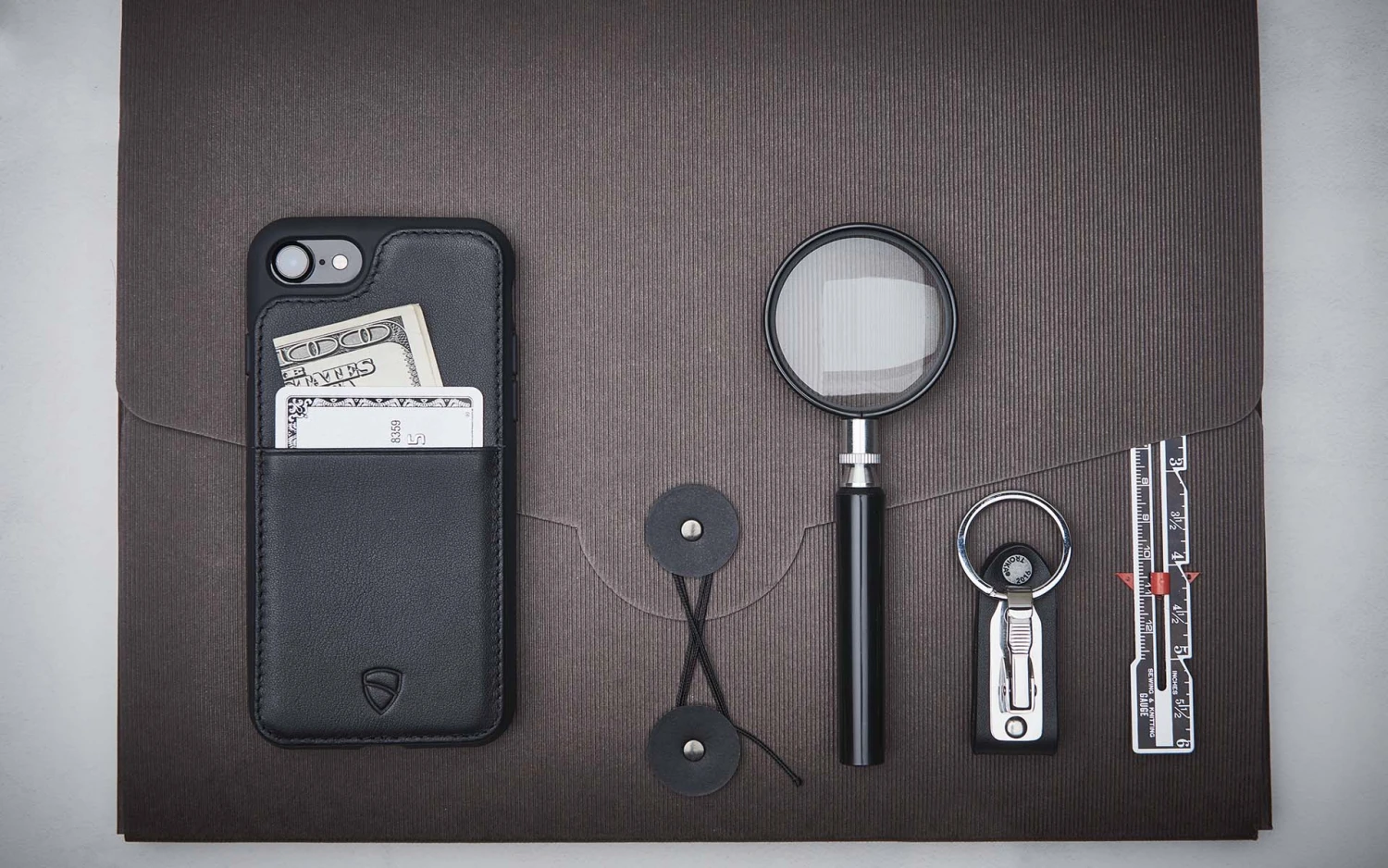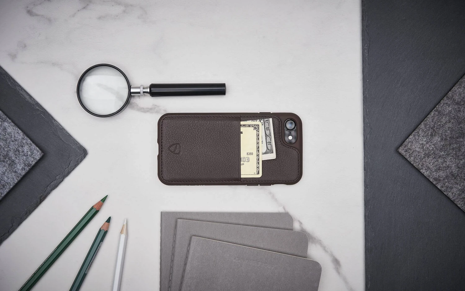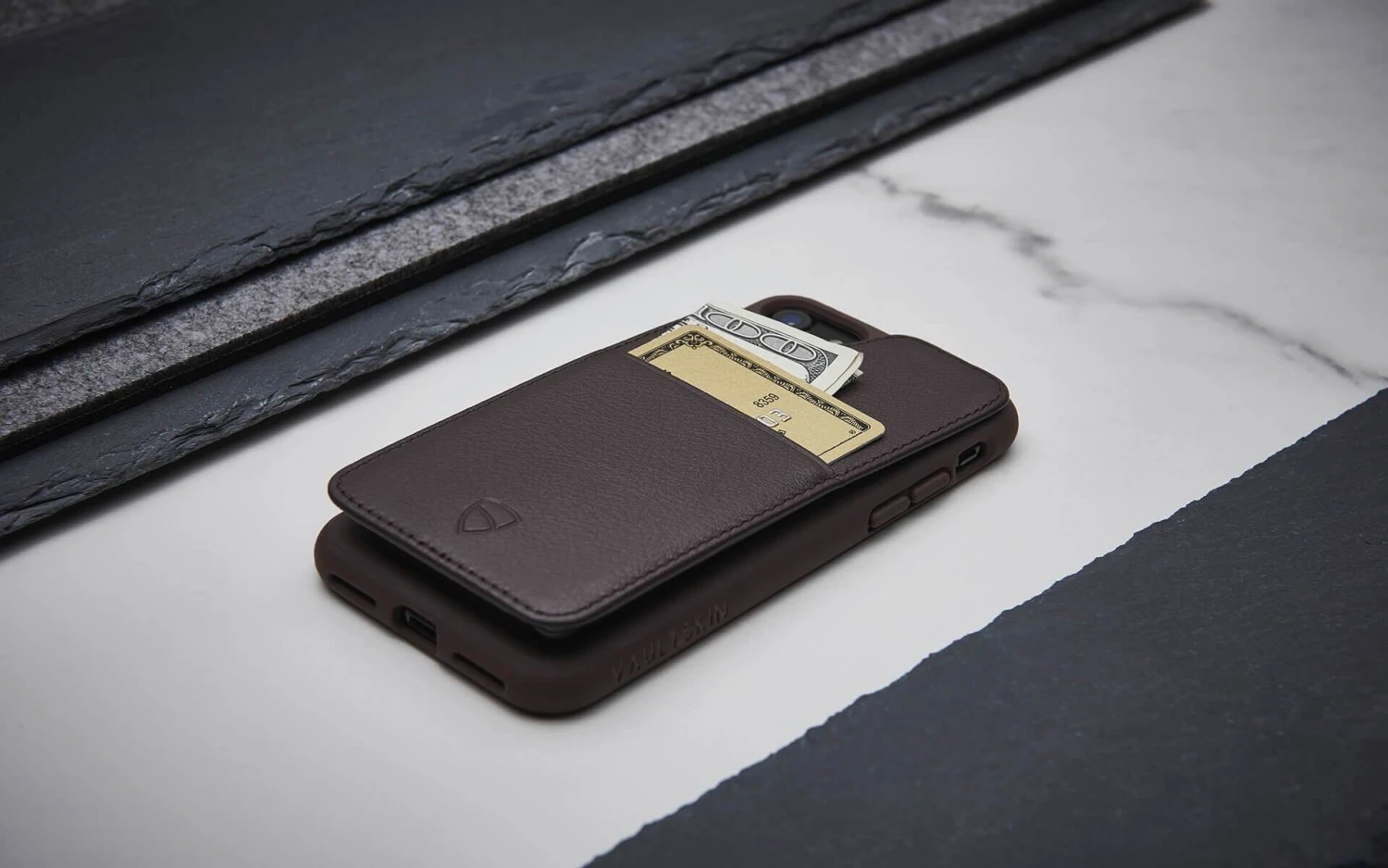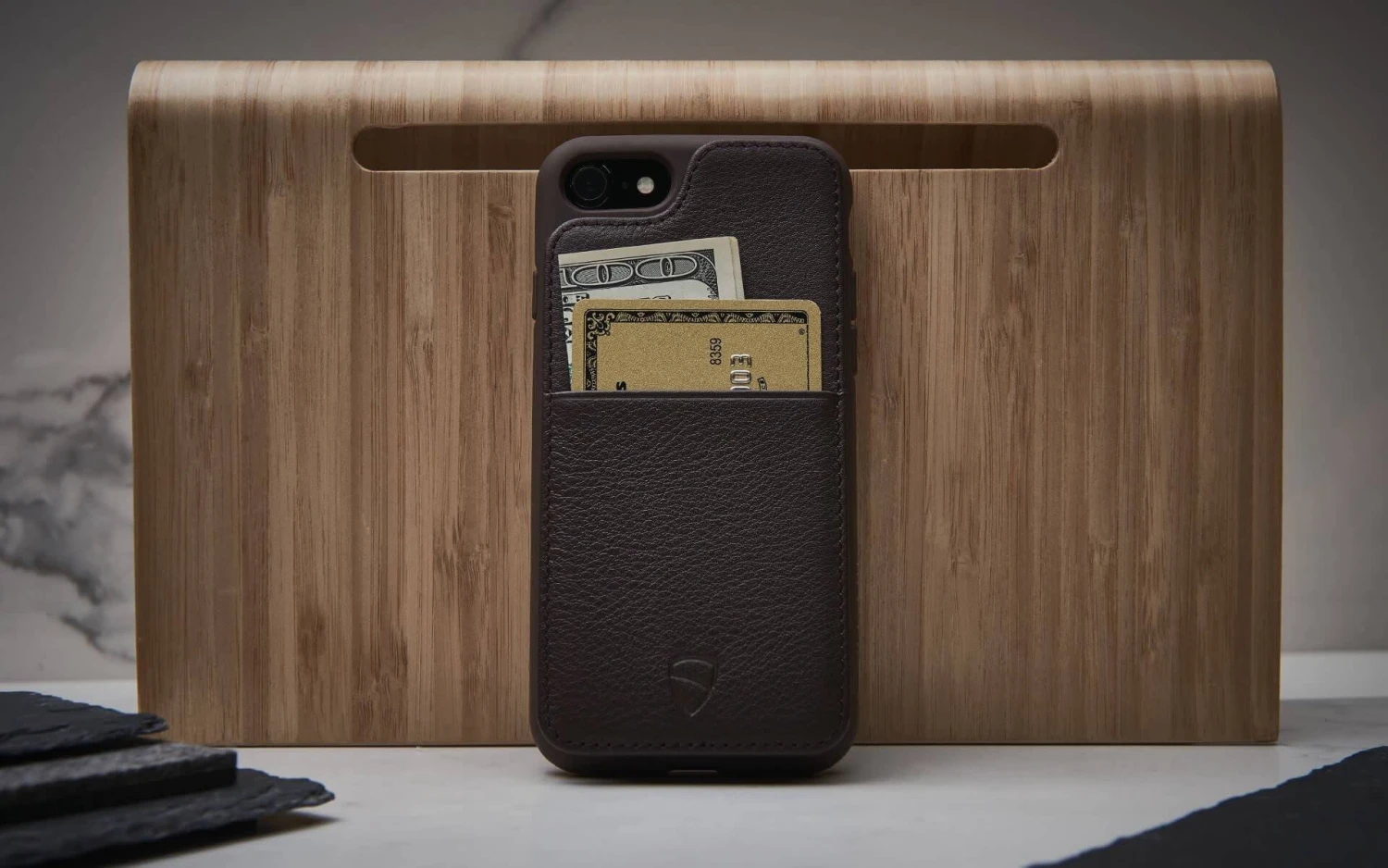 Phone and wallet become one to simplify your day. The ideal melange of style and practicality PRAGMATICALLY SOPHISTICATED Practicality is a priority for ETON ARMOUR. The combination of your phone and wallet allows you to save time and energy. With an intuitive design ETON ARMOUR speeds up your daily transactions and keeps all your important things in one place. Crafted to be space efficient, ETON ARMOUR is compact and will fit in your pocket easily. Have your whole life right at the tip of your fingers at all times. ALWAYS SAFE ETON ARMOUR’s design and choice of materials make it ideal for protecting your iPhone in a subtle way. The new rubber padding around the phone itself adds an extra layer of protection, while the leather body of the case cushions most drops. The screen is shielded by a raised lip. With ETON ARMOUR in your pocket your phone will always be safe and stylish. HIGH QUALITY MATERIALS Made from top grain Italian leather, ETON ARMOUR’s refined look fits in anywhere. The feeling of the soft leather feels great in your hands and will give you a solid grip on your iPhone at all times. Be in control with ETON ARMOUR. Compact, Safe And Refined Store your cards and bills in fashionable safety.