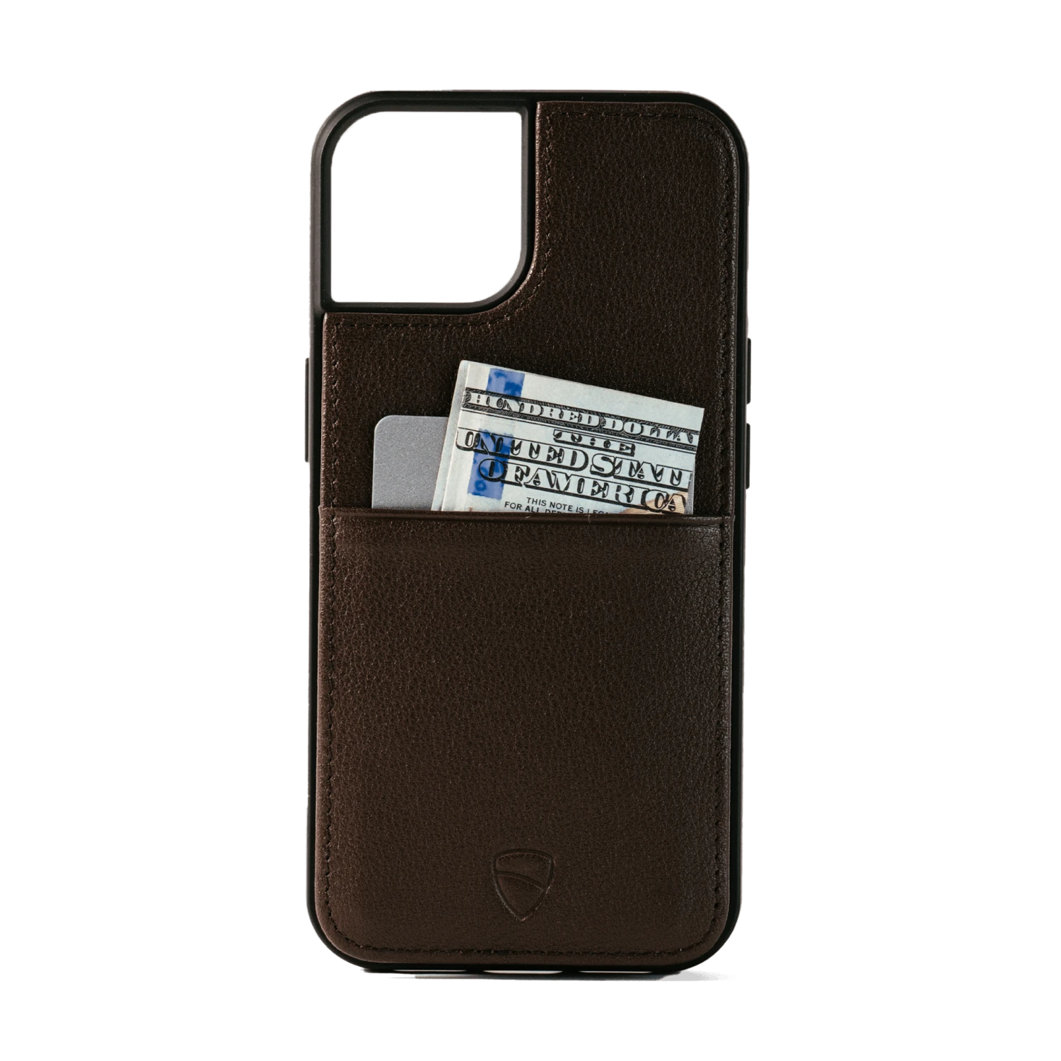 Phone and wallet become one to simplify your day. The ideal melange of style and practicality PRAGMATICALLY SOPHISTICATED Practicality is a priority for ETON. The combination of your phone and wallet allows you to save time and energy. With an intuitive design ETON speeds up your daily transactions and keeps all your important things in one place. Crafted to be space efficient, ETON is compact and will fit in your pocket easily. Have your whole life right at the tip of your fingers at all times. ALWAYS SAFE ETON’s design and choice of materials make it ideal for protecting your iPhone in a subtle way. The new rubber padding around the phone itself adds an extra layer of protection, while the leather body of the case cushions most drops. The screen is shielded by a raised lip. With ETON in your pocket your phone will always be safe and stylish. HIGH QUALITY MATERIALS Made from top grain Italian leather, ETON’s refined look fits in anywhere. The feeling of the soft leather feels great in your hands and will give you a solid grip on your iPhone at all times. Be in control with ETON. Compact, Safe And Refined Store your cards and bills in fashionable safety.
