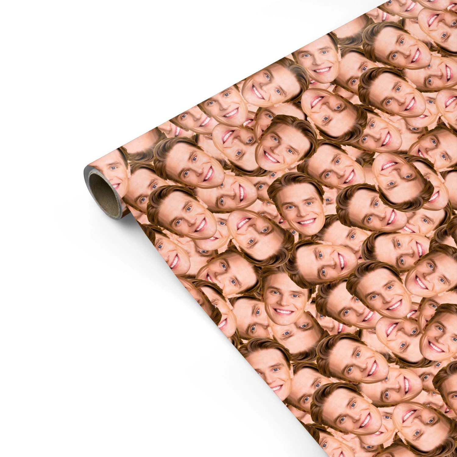 Introducing our Face wrapping paper. Personalise this unique photo face design with any face of your choice. Our clever software automatically cuts out the face from your image to produce a fun customised collage wrapping paper. This personalised photo face wrapping paper is perfect for Birthday celebrations, Anniversaries, Christmas and any other quirky celebration.
