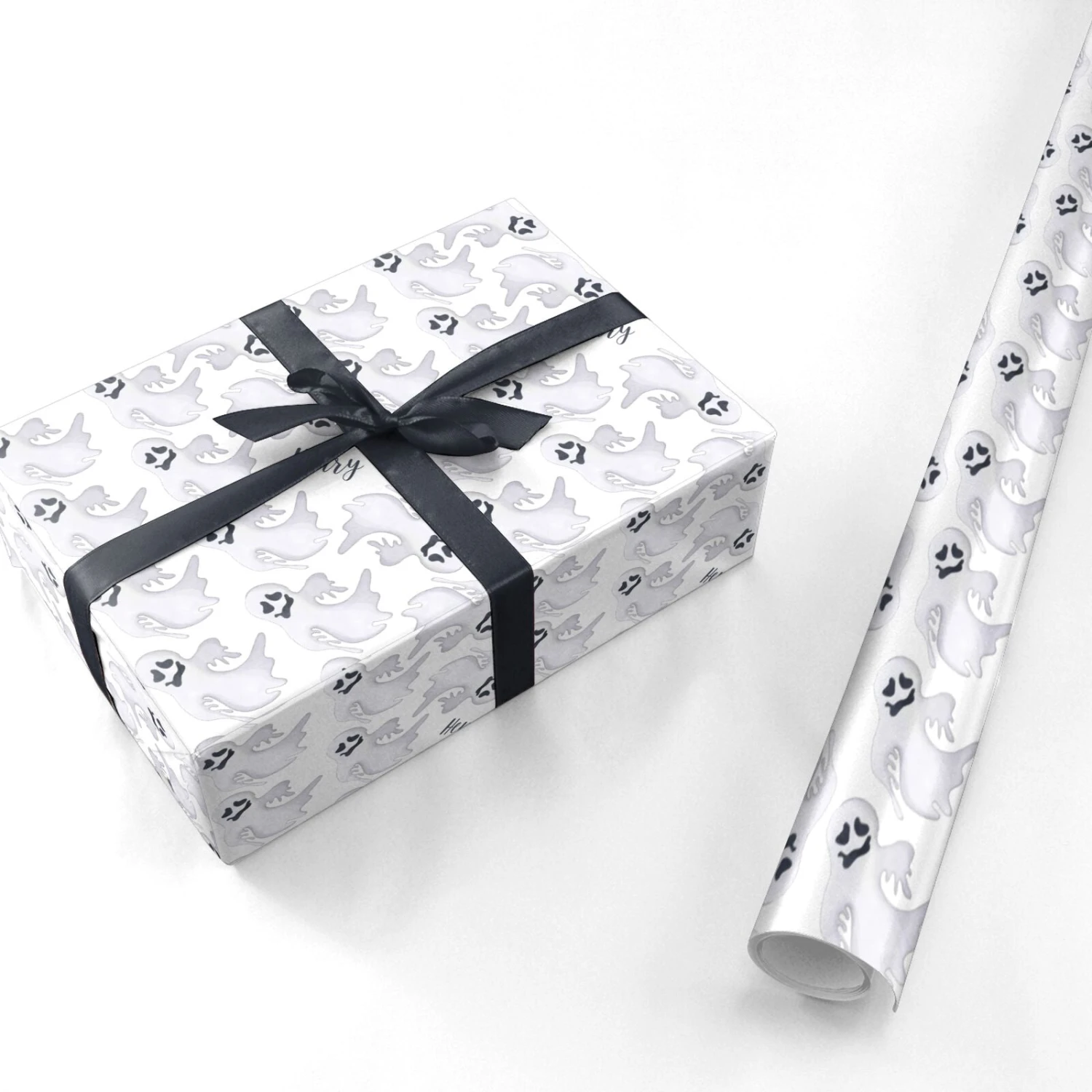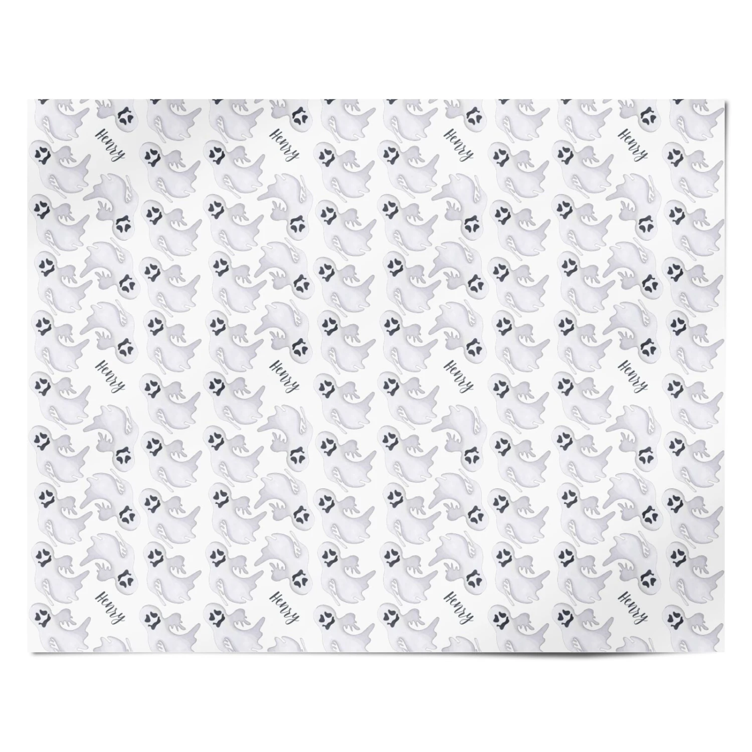 Nothing says Halloween better than a room full of ghosts and that’s what this spooky Wrapping Paper delivers. Set on a light background, our tightly-packed frightening phantoms are floating upright and upside-down with their scary dark eyes and groaning mouths standing out against their terrifyingly tattered and ghostly-white body shapes. These guys put the “oooooo” in spooky, and with space to add a name in black letters, this gift wrap can be perfectly personalised to delight Halloween fans of all ages.