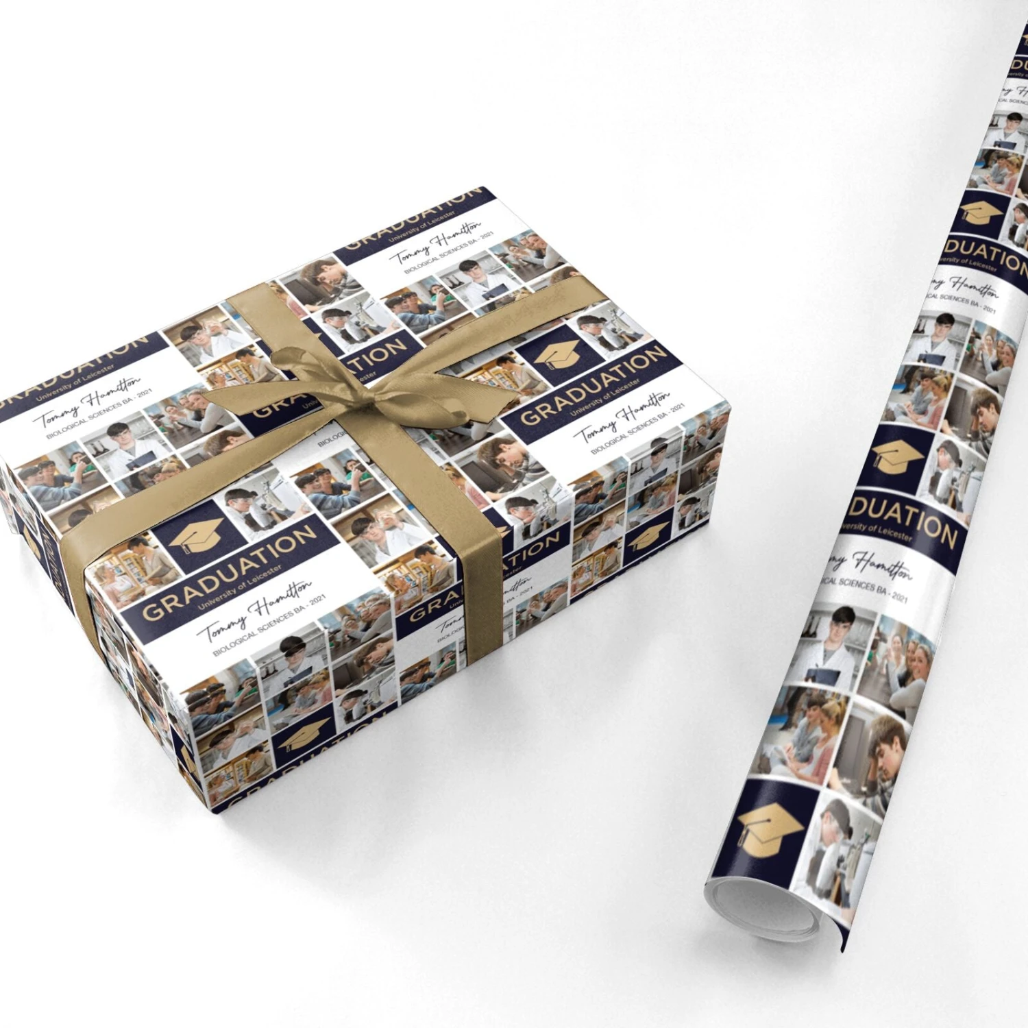 Our Graduation Personalised Photos Wrapping Paper design allows for multiple photographs to be uploaded. Extend your congratulations to a well deserving graduate!