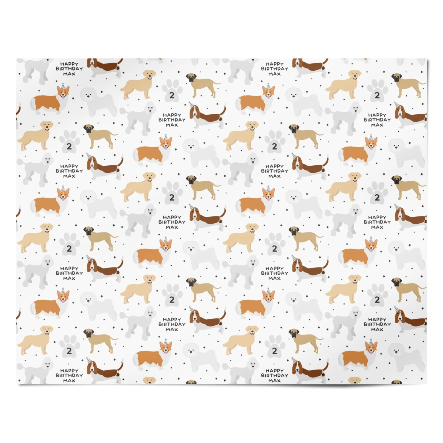 Our Happy Birthday Personalised Dogs Wrapping Paper is a wooftastic design suitable for kids and adults for any birthday. This dog design features illustrations of various dog breeds and allows you to personalise the name of the birthday boy or girl.