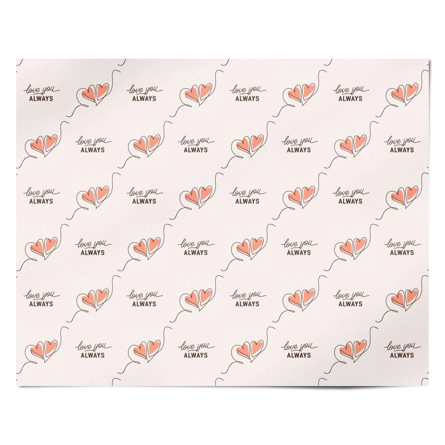 This charming wrapping paper features delicate heart-shaped balloons with the heartfelt message “Love You Always” in elegant script. Set against a soft pastel background with a subtle dotted texture, this romantic design is perfect for anniversaries, Valentine’s Day, weddings, or any occasion celebrating love. The whimsical floating hearts and delicate line art add a dreamy touch, making it a beautiful choice for wrapping gifts for your special someone.