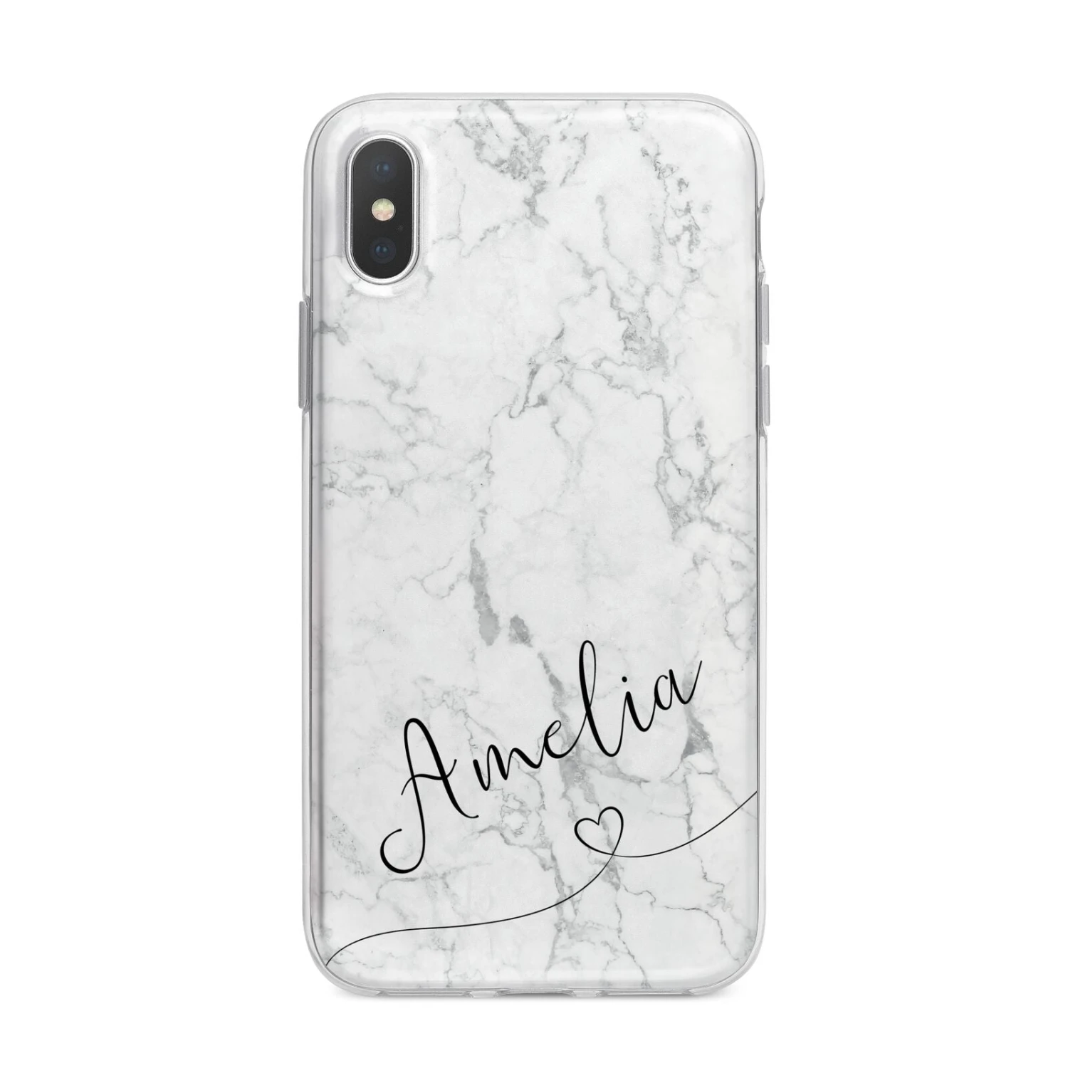 This Marble with Text Apple iPhone Case is an affordable way to make your phone case look extra chic. This white, absolutely bang-on-trend, marble design is all about simplicity.