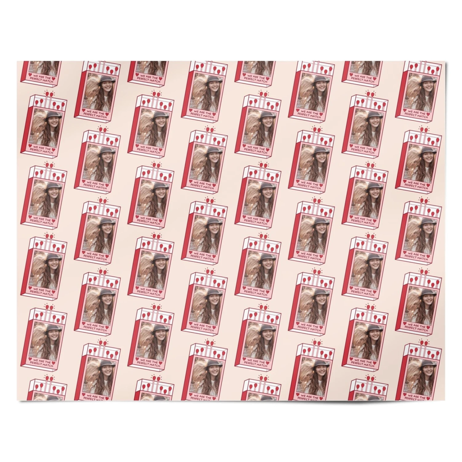 Celebrate love with this unique wrapping paper featuring your favourite photo framed in a charming matchbox design. Add a personal touch to gifts for Valentine’s Day, anniversaries, or any romantic occasion. The fun “We Are the Perfect Match” text adds playful charm, making this wrapping paper a heartfelt choice for someone special.
