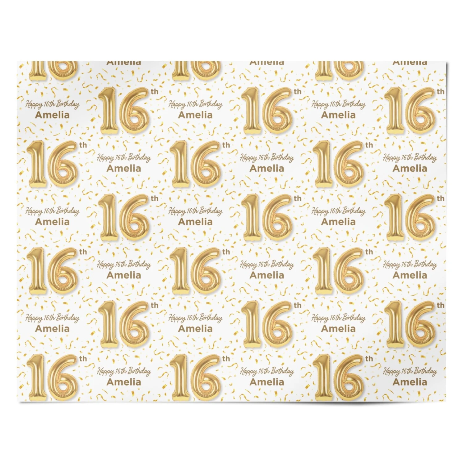 Celebrate this great milestone with our Personalised 16th Birthday wrapping paper. Customise with a name of your choice and view in our personalised tool. This luxe design looks great with a gold theme and is best teamed with the matching decor.Â