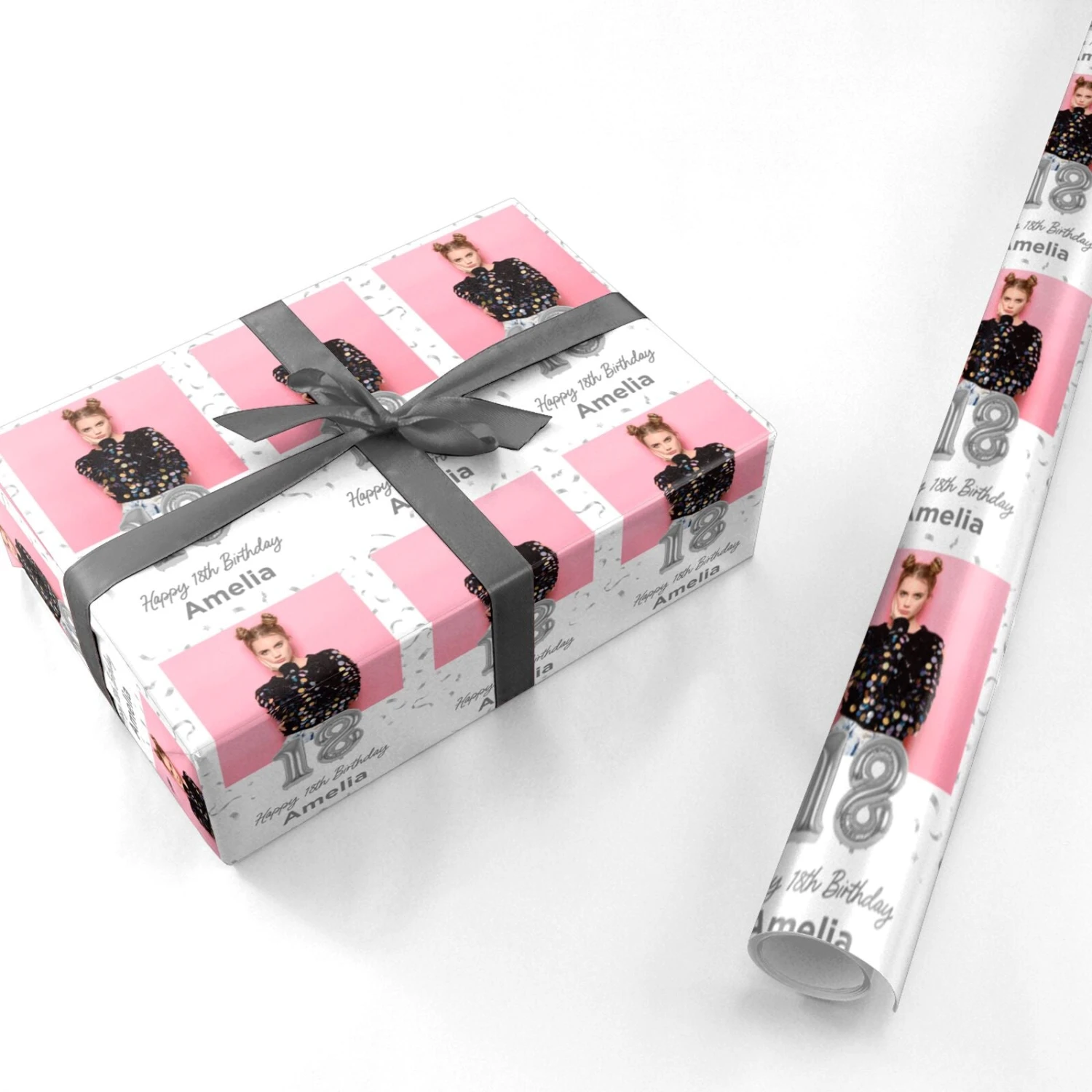 Surprise the birthday boy or girl with this one-of-a-kind wrapping paper that puts their name and age front and centre. The shimmering silver balloon age adds an elegant, celebratory touch that will make their special day feel even more magical. Wrap up all their presents in this customised design for a cohesive, thoughtful birthday look. Add any photo and preview your design in an instance.
