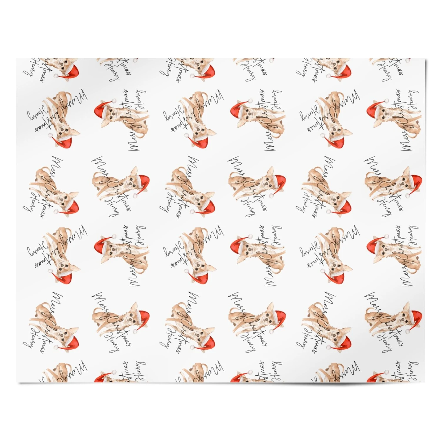 This Christmas accessory is the perfect gift for a dog lover. Our Personalised Christmas Chihuahua Wrapping Paper features an adorable chihuahua, wearing its own little Santa’s hat! Our UK design team have illustrated the chihuahua in a delicate watercolour style, which is super realistic. Then, to make this gift wrap completely one of a kind, you can enter your chosen name into the design, alongside the puppy.Â