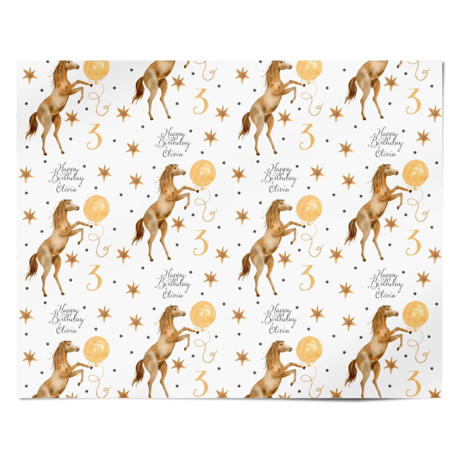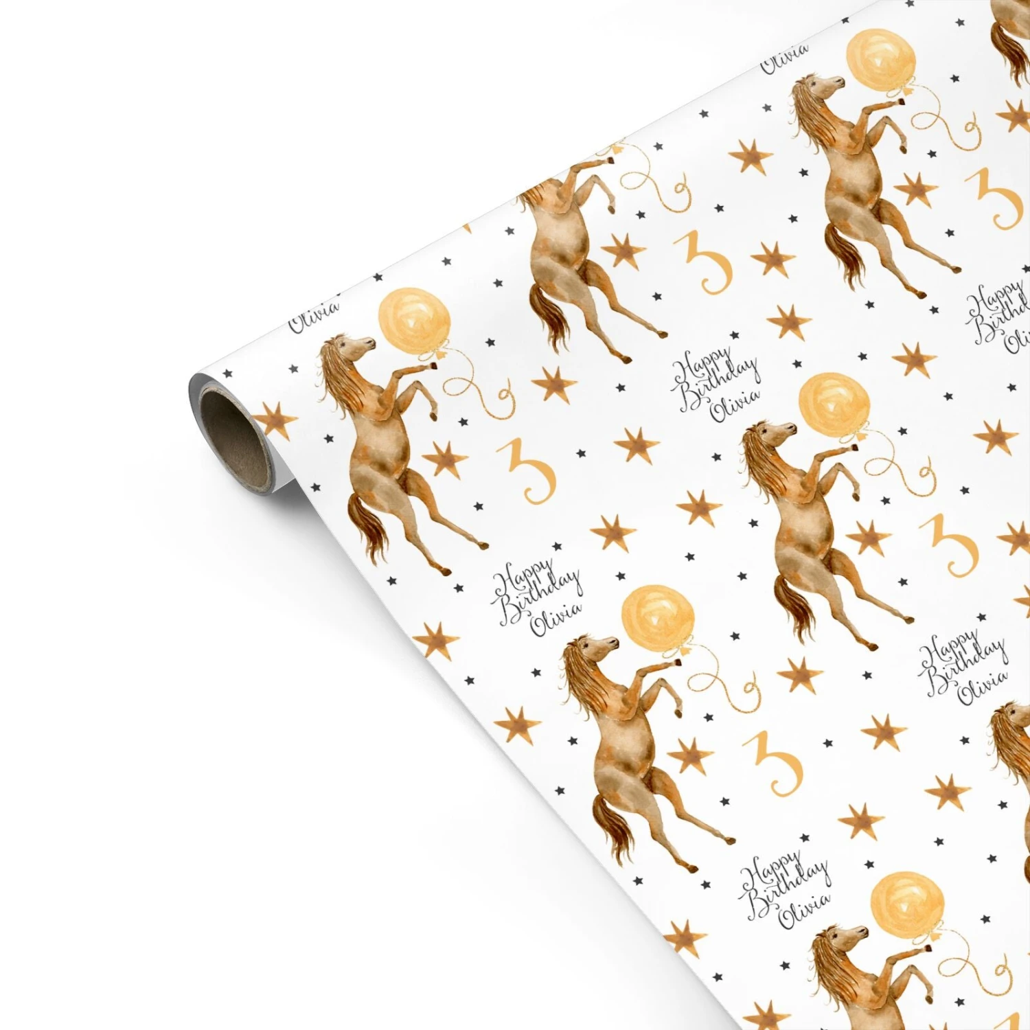 Our Personalised Horse Happy Birthday Wrapping Paper is a beautiful watercolour illustration of a horse, along with the text Happy Birthday. Add any name and age to make it your own. Perfect for stylish girls birthday parties.