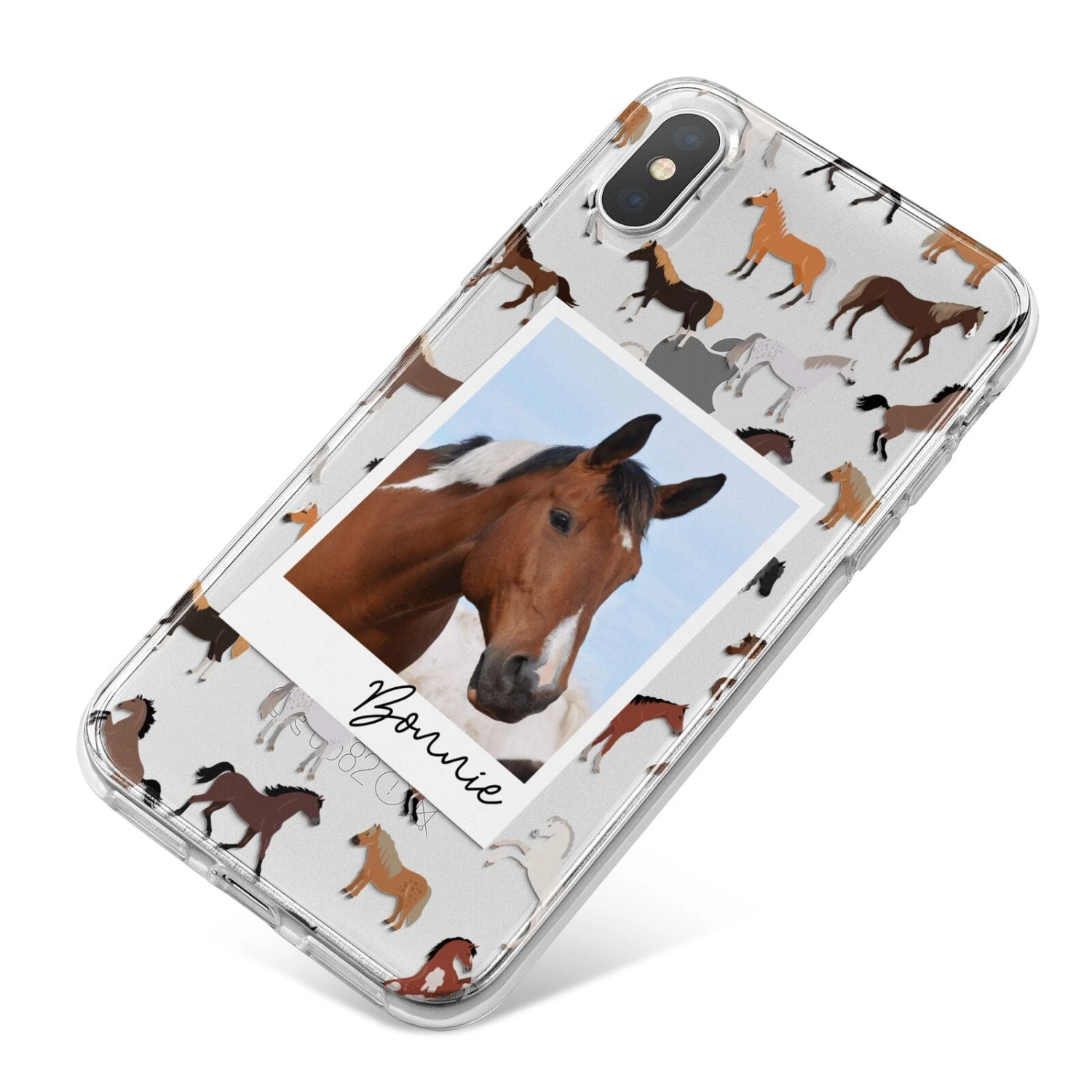 This Personalised Horse Photo Apple iPhone Case is the perfect design for any Horse lover. Customise the polaroid photo with your most loved horsey image. This makes for a great gift and can be matched with other Horse tech accessories.