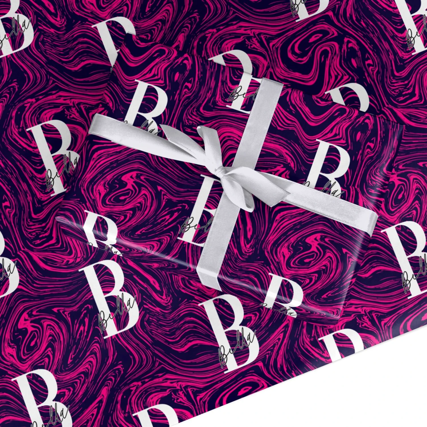 Ink Marble is very much on trend and here is why we are featuring it. The deep purple and pink hues with bold personalisation look simply stunning. Choose your initial and name to personalise this unique design and preview in our customisation tool. A great stylish marble design to wrap gifts for loved ones and friends. Perfect for all occasions and birthdays.