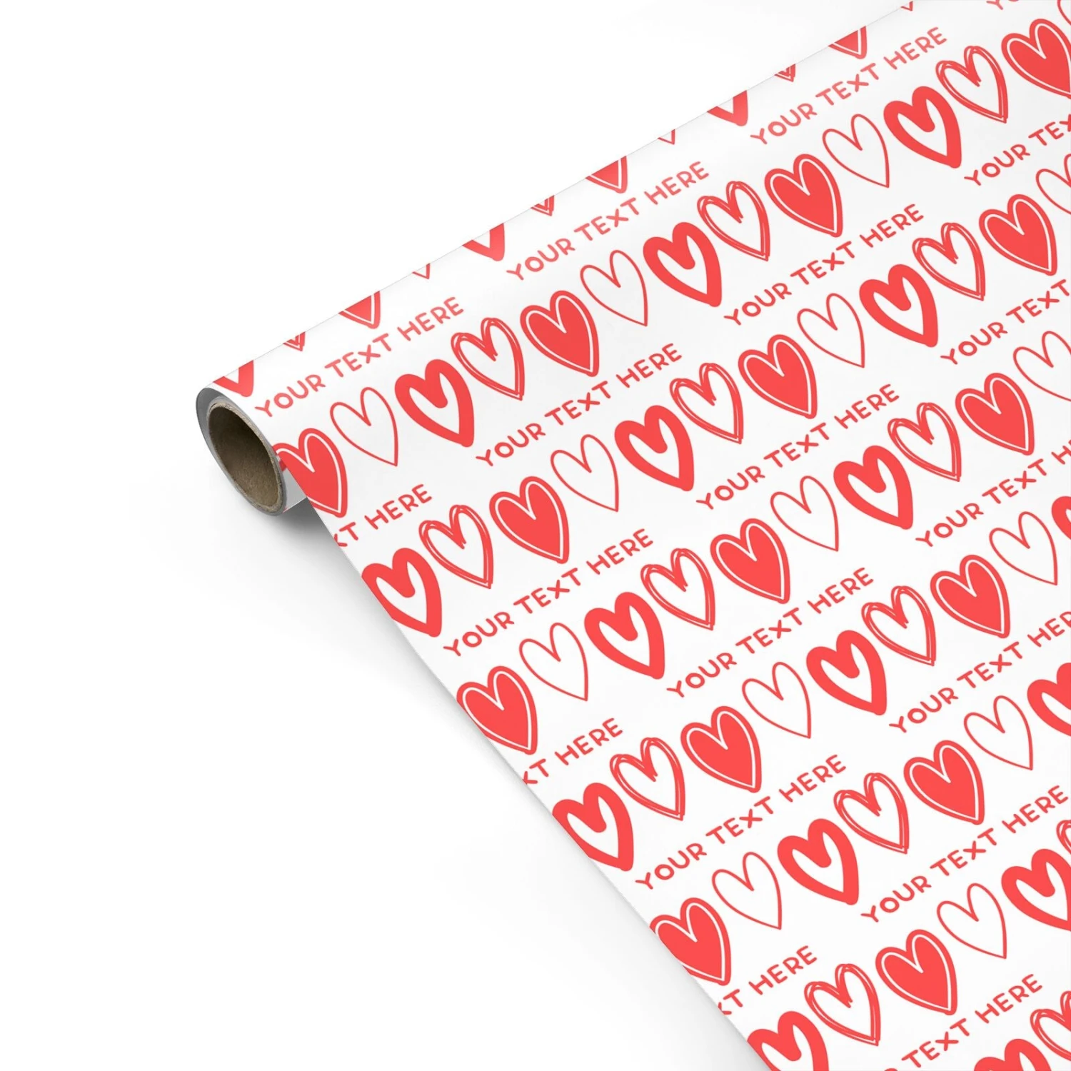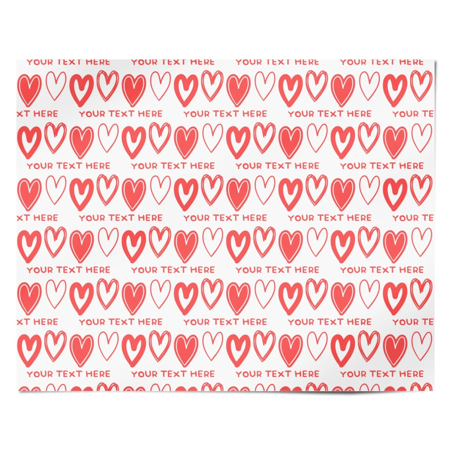 This personalised love heart wrapping paper allows you to add a unique text message for a heartfelt touch. Featuring a charming pattern of hand-drawn red and white hearts interspersed with your custom message, it’s perfect for Valentine’s Day, anniversaries, or any romantic occasion. Made from high-quality materials, this paper adds a memorable and bespoke element to your gift presentation. Customise with meaningful words to create a truly special wrap that will make any recipient feel cherished and loved.