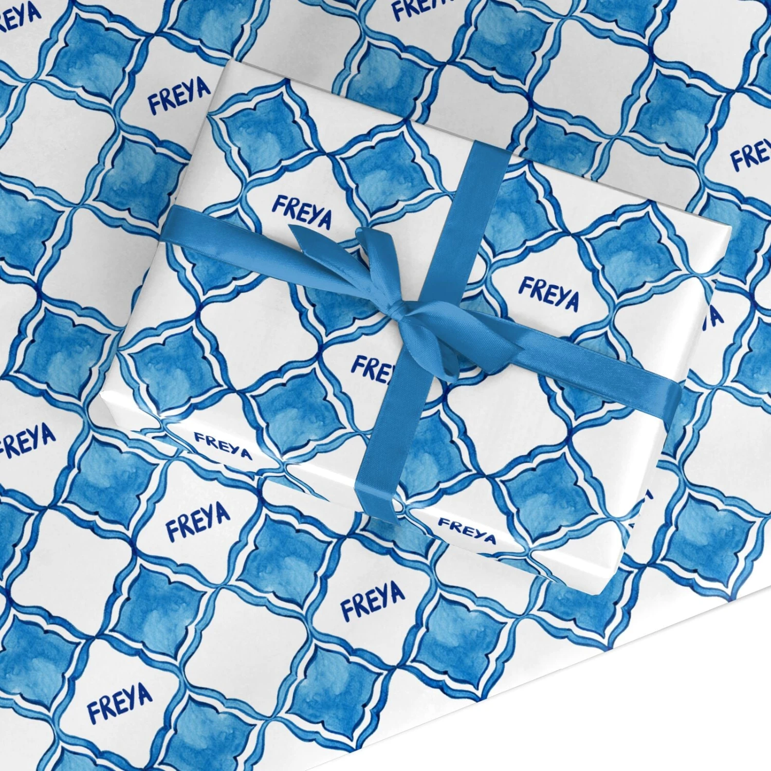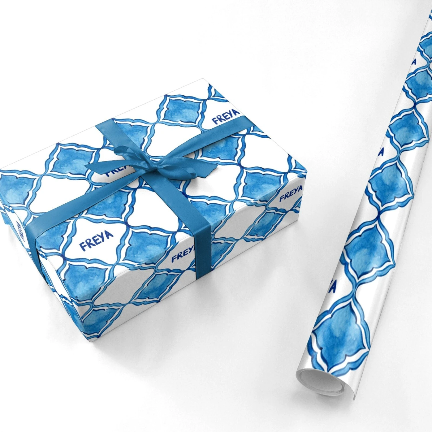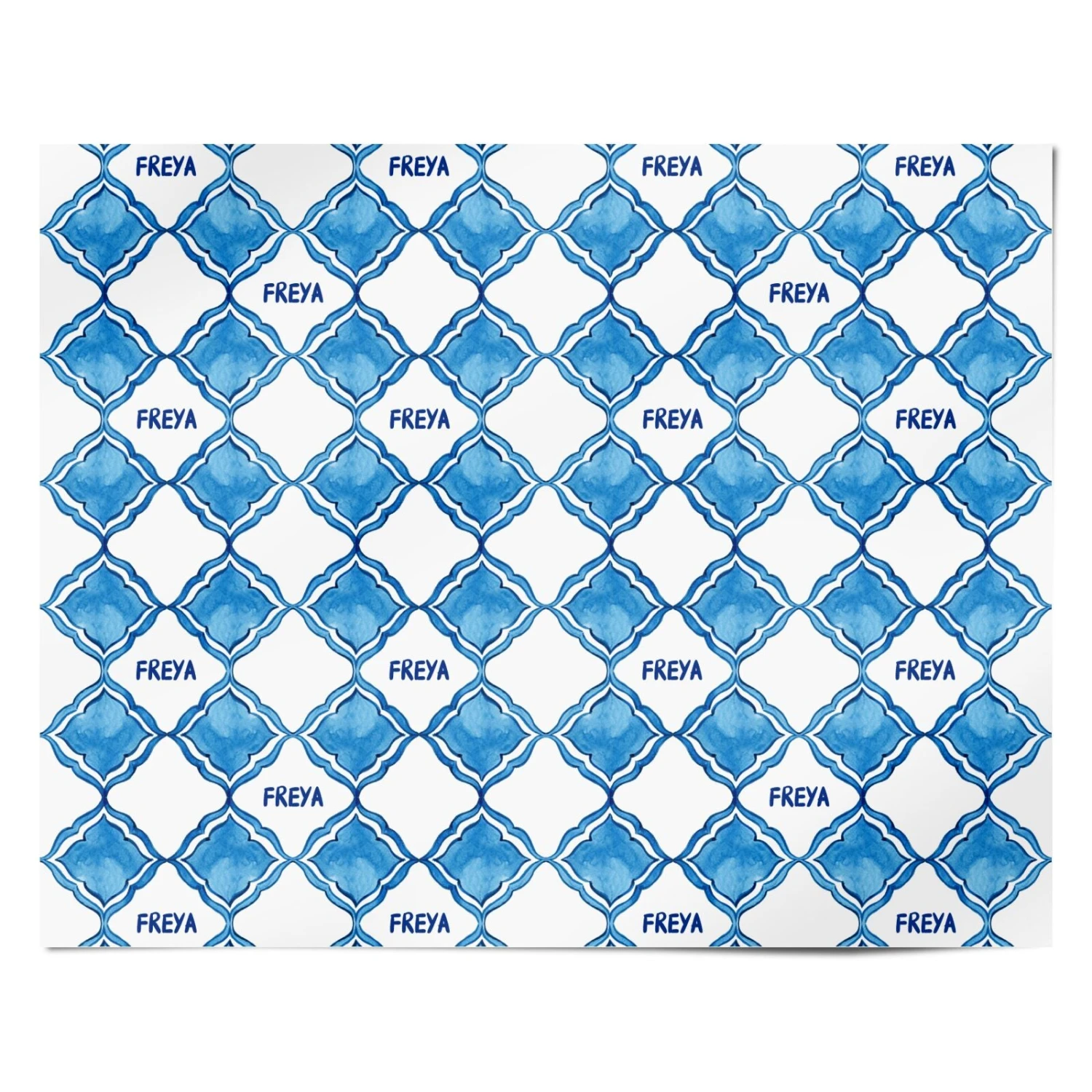 This chic, bespoke design is a wonderful way to bring some European style to your accessories. Our Personalised Mediterranean Tiles Wrapping Paper features an intricate repeating print of painted blue tiles on a white background. You can even make this design completely your own by using our customisation services to feature your name into the gift wrap. We’ll feature it in between the tiles, in a matching blue painted font.Â