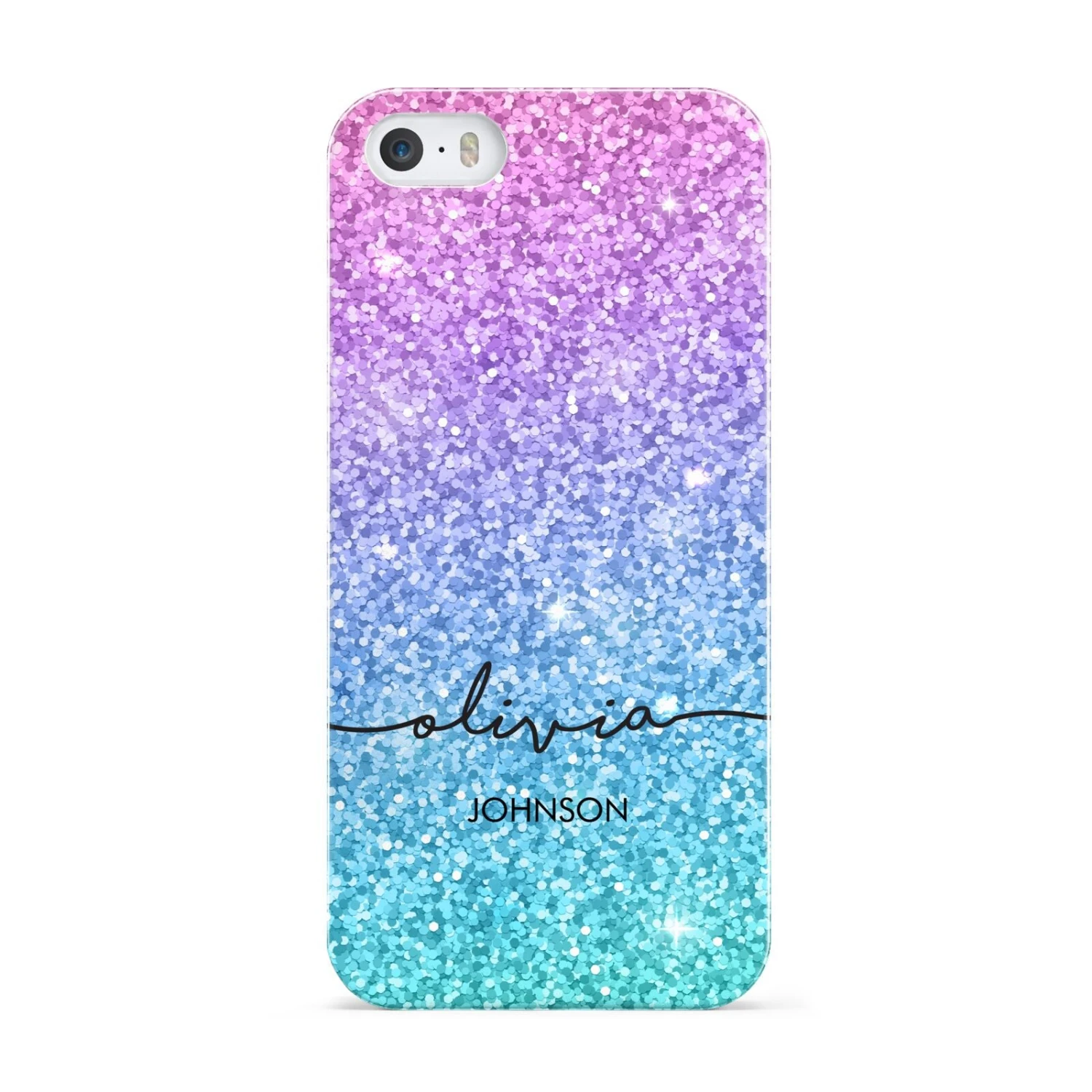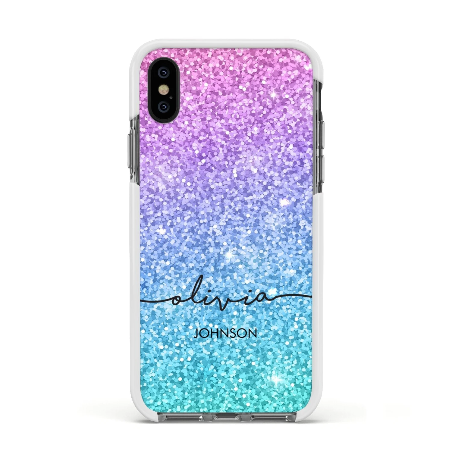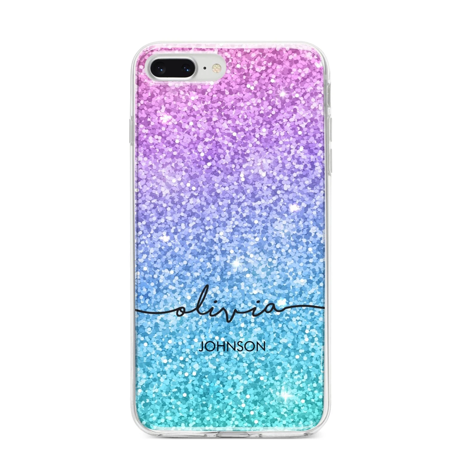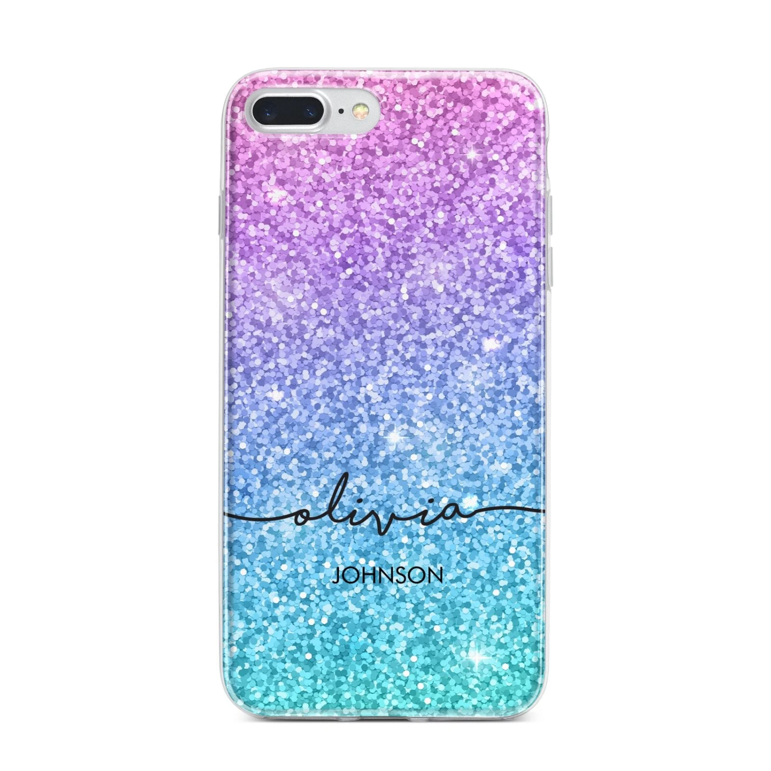 Our Multi-Colour Glitter with Text Apple iPhone Case has the appearance of shimmering with countless glittery sparkles. It’s the perfect way to add some bold glamour to your phone case. The design features mesmerising flecks of glitter, in blue, pink and purple hues. What’s more, using our customisation tool, you can incorporate your full name into the design with boldly contrasting typography fonts.