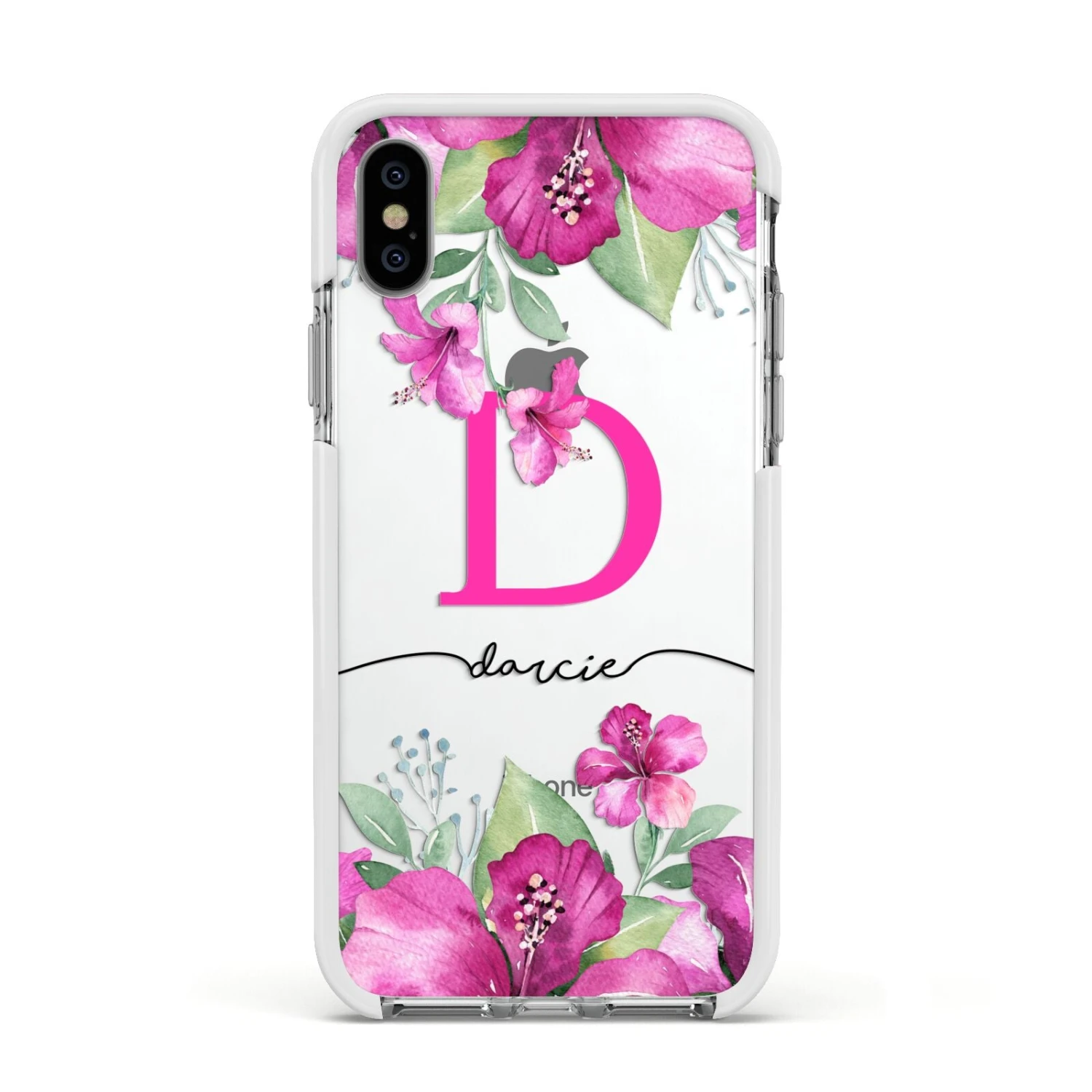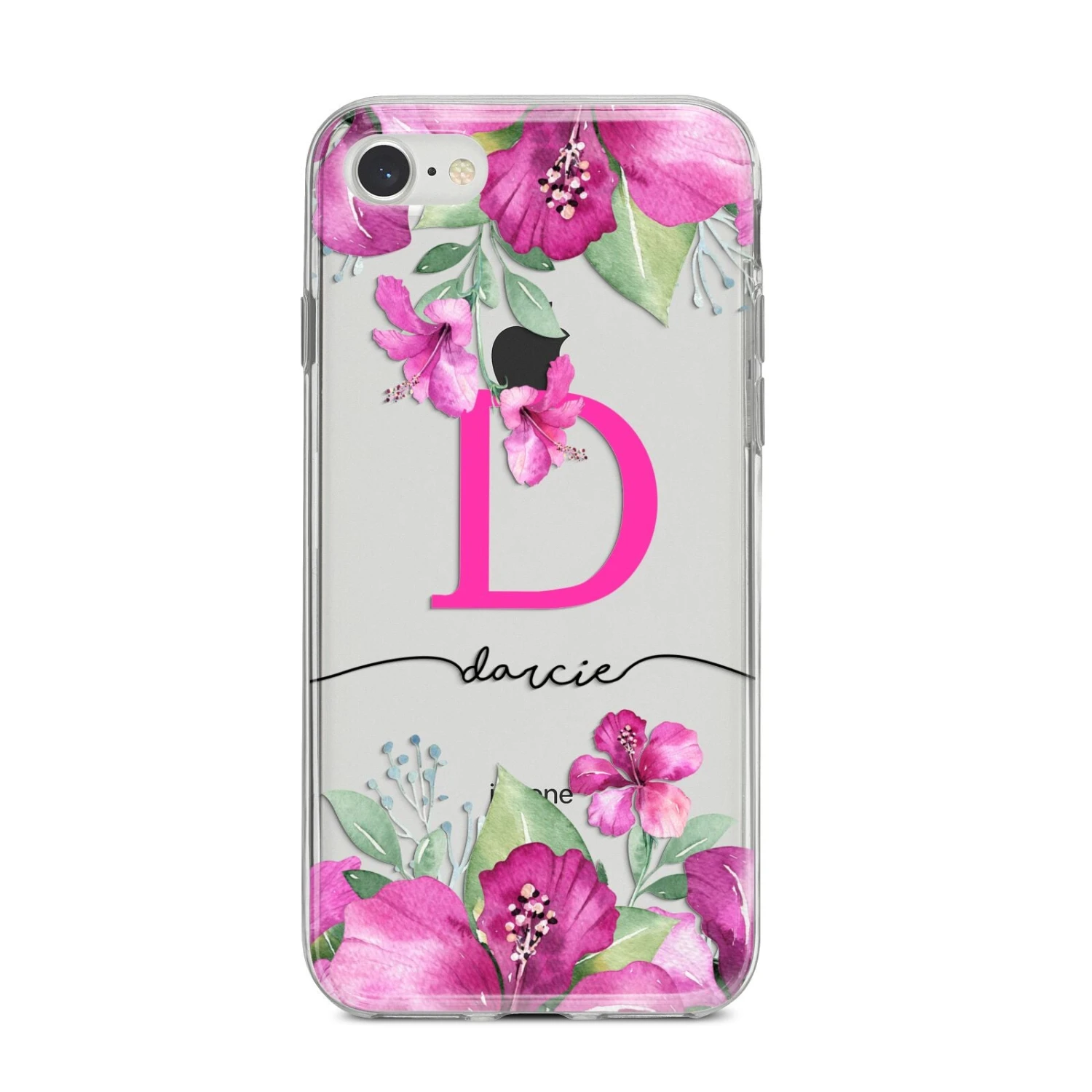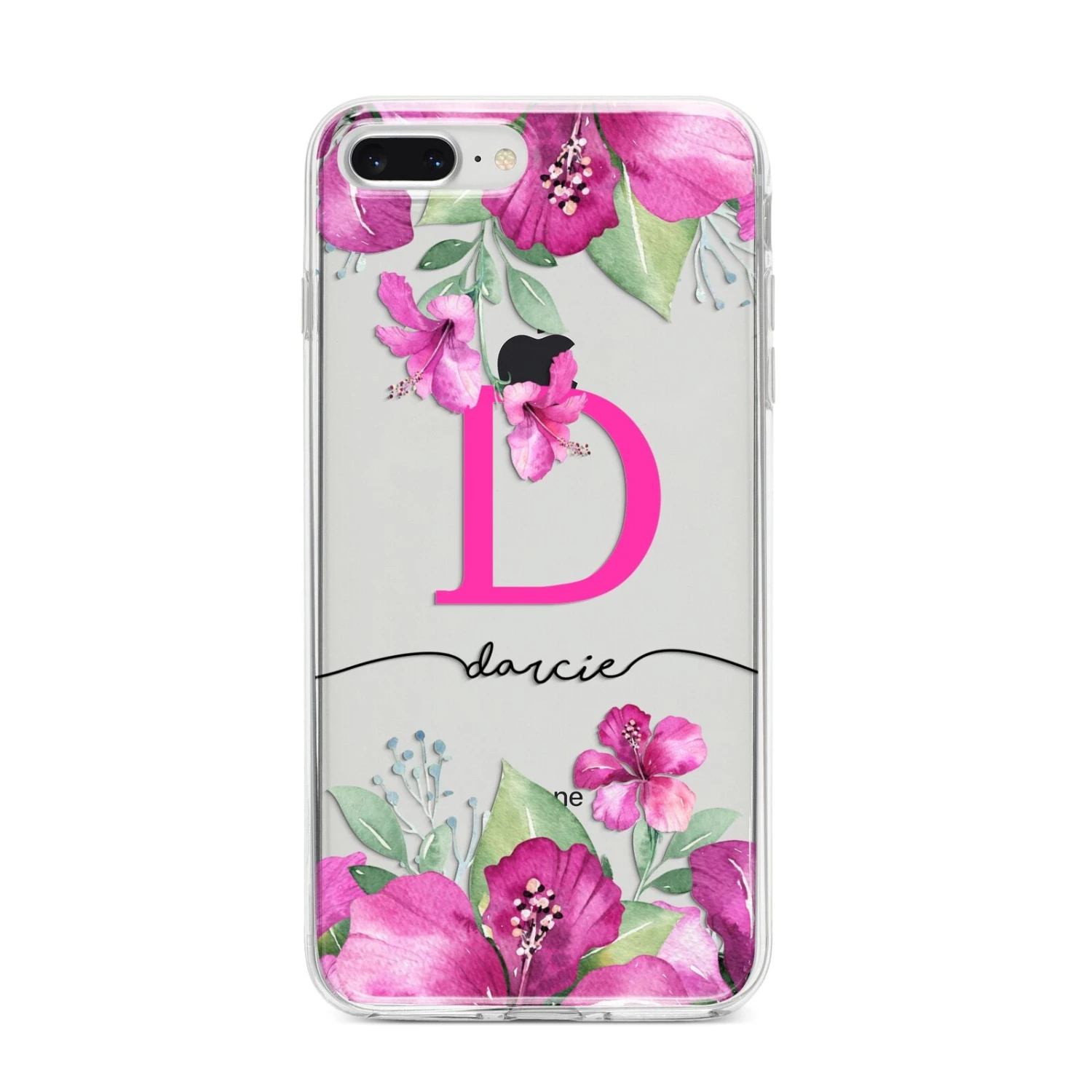 This Personalised Pink Lilies Apple iPhone Case is a vibrant watercolour design of pink lilies on a clear background. This design looks especially great on our transparent products, as the clear areas of the design remain see through, providing a great contrast to the flowers. The design can be personalised with a large pink initial monogram and a name.