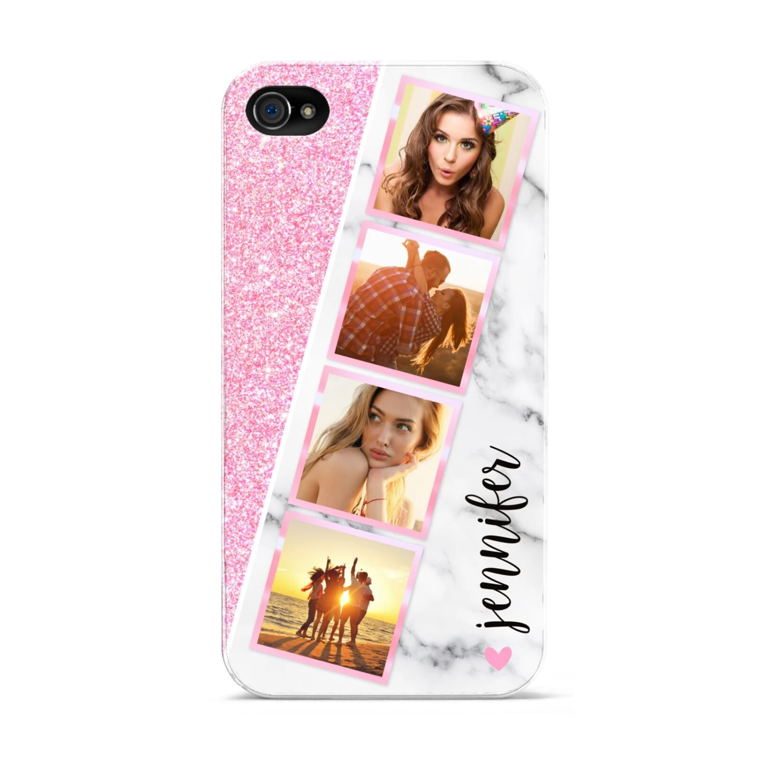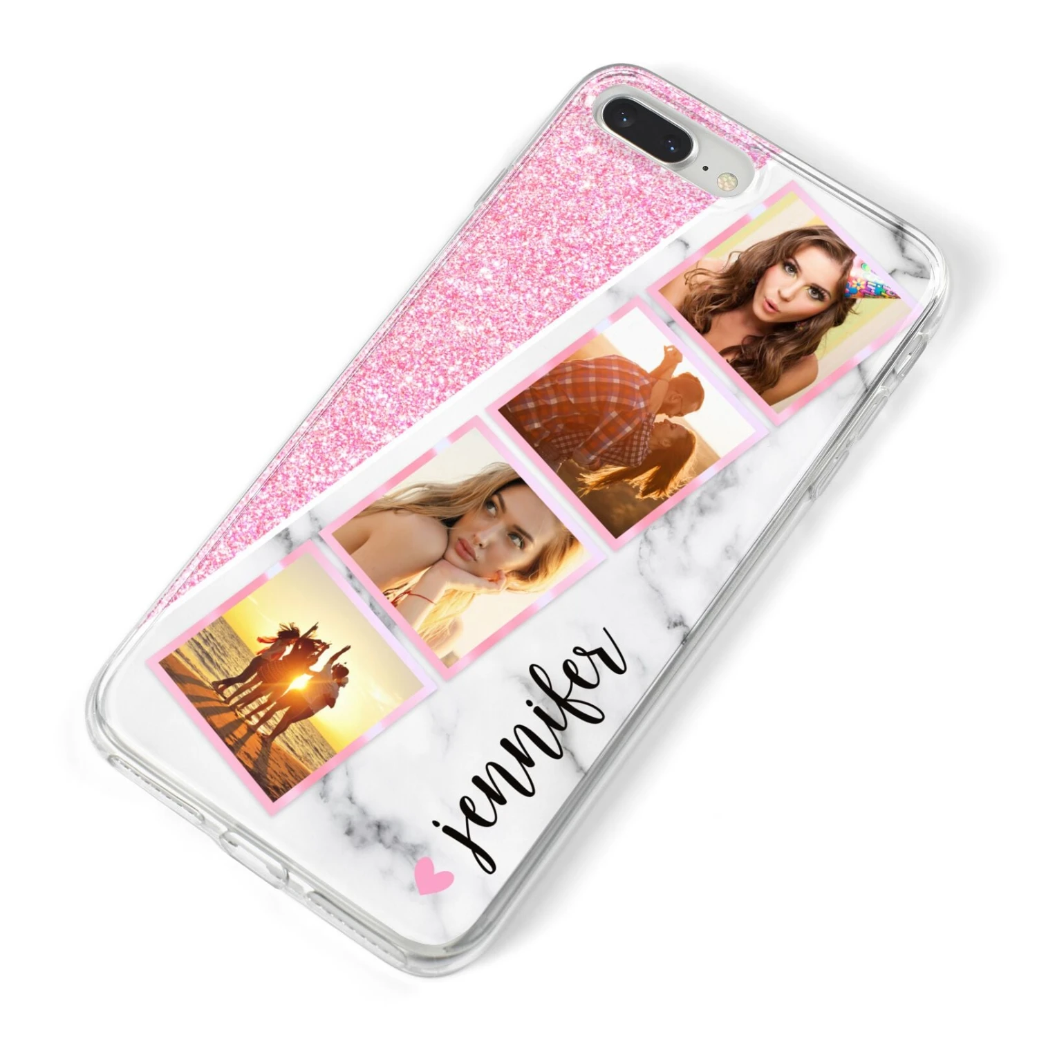 This Personalised Pink Marble Collage Apple iPhone Case is absolutely STUNNING! One of the girliest phone on offer, this design features a split background of hot pink glitter and sophisticated white/black marble. It features four fully customisable images, each with a pop of pink around the border to really propel your boss babe energy to those around you! Simply upload 4 of your favourite pics into the live cropping tool to arrange and crop them as you please. Alongside the images is a gorgeous, calligraphic font which can be customised to your name, followed by a cute pastel pink heart to add a little bit of cute to your daily routine!