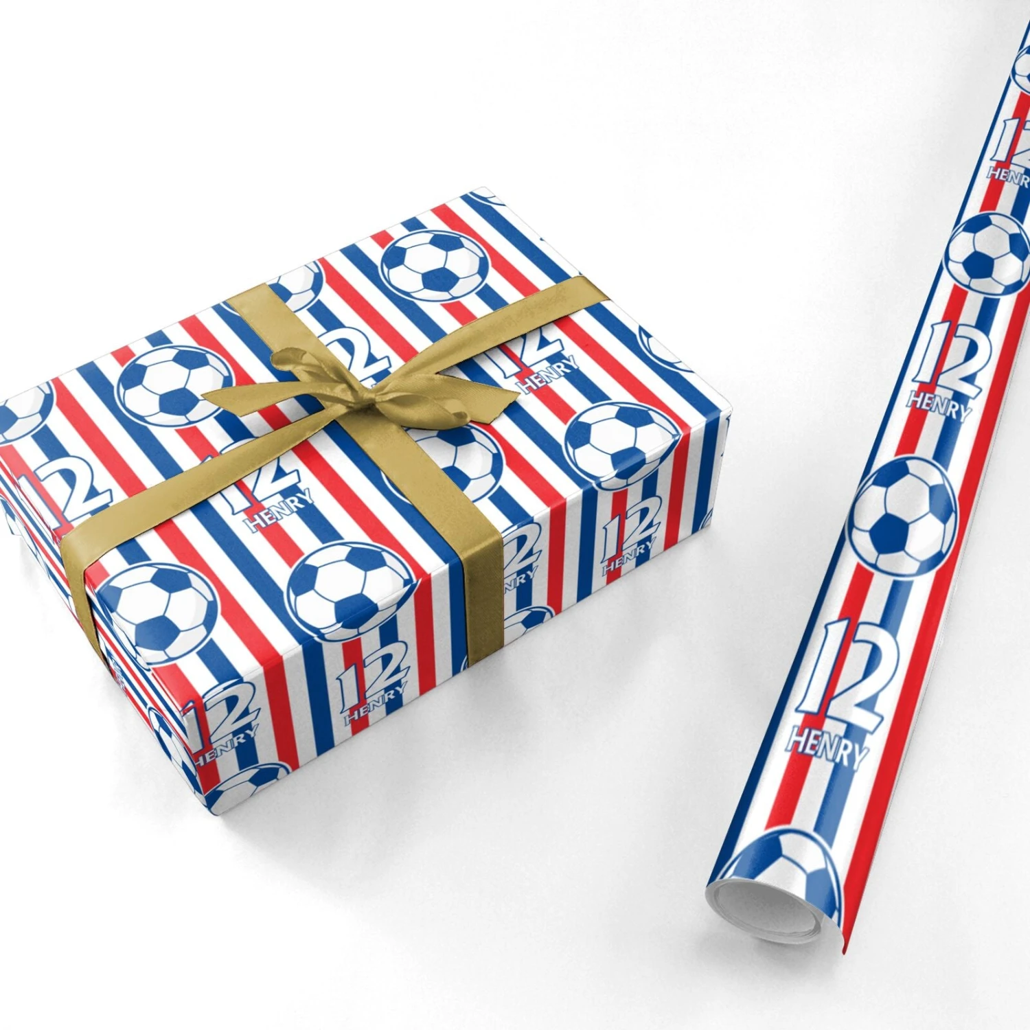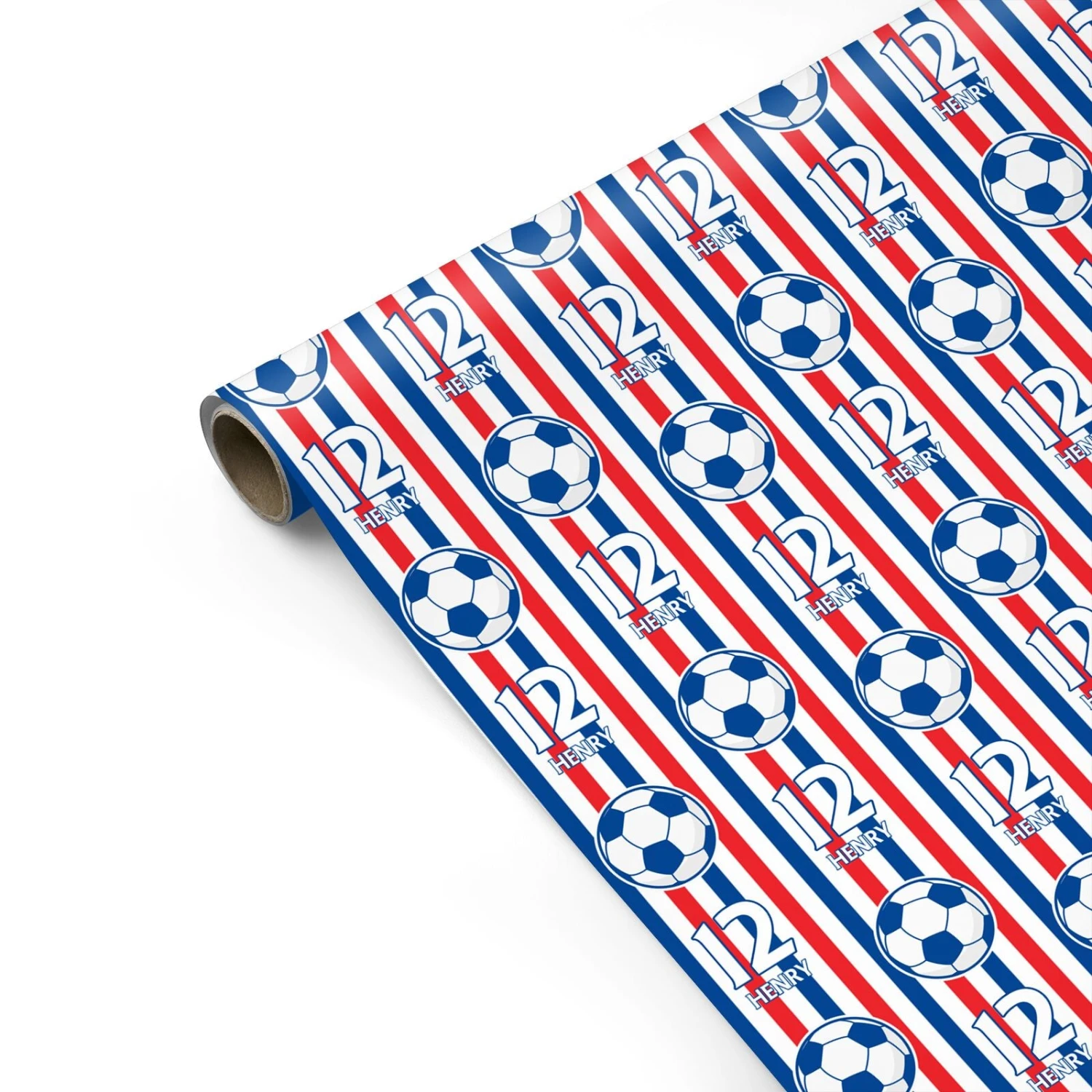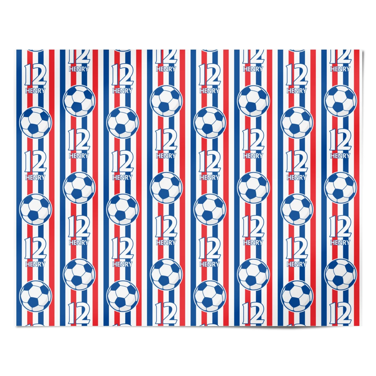 Score big on any special occasion with this custom football-themed wrapping paper. Featuring bold red, white, and blue stripes, classic football motifs, and the option to personalise with a name and number, this design is perfect for football fans, young players, and sports enthusiasts. Whether it’s for a birthday, Father’s Day, or a team celebration, this personalised gift wrap makes every present stand out. Printed on high-quality wrapping paper, it ensures crisp folds and a premium finish for an unforgettable unboxing experience.