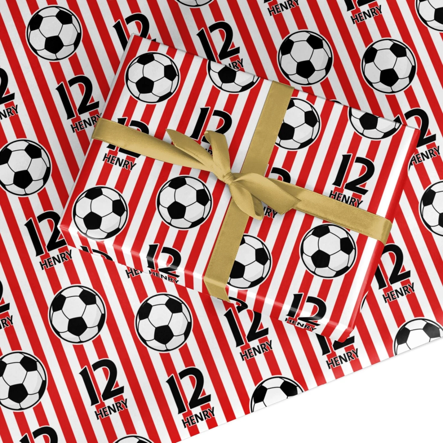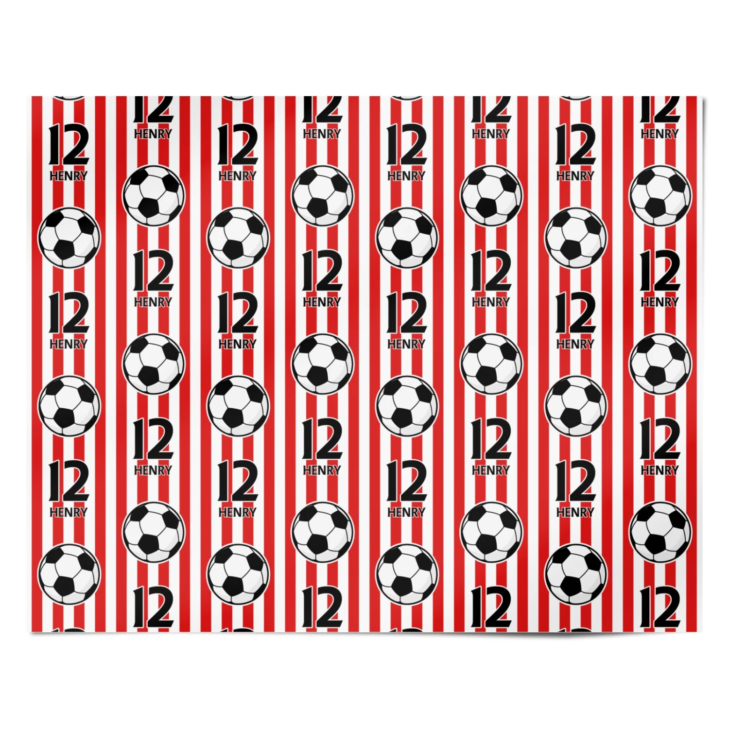 Score big with this personalised football-themed gift wrap, featuring bold red and white stripes, classic football motifs, and the option to customise with a name and number. Whether celebrating a football-mad kid’s birthday or surprising a die-hard supporter, this custom wrapping paper brings the excitement of the pitch straight to their presents.