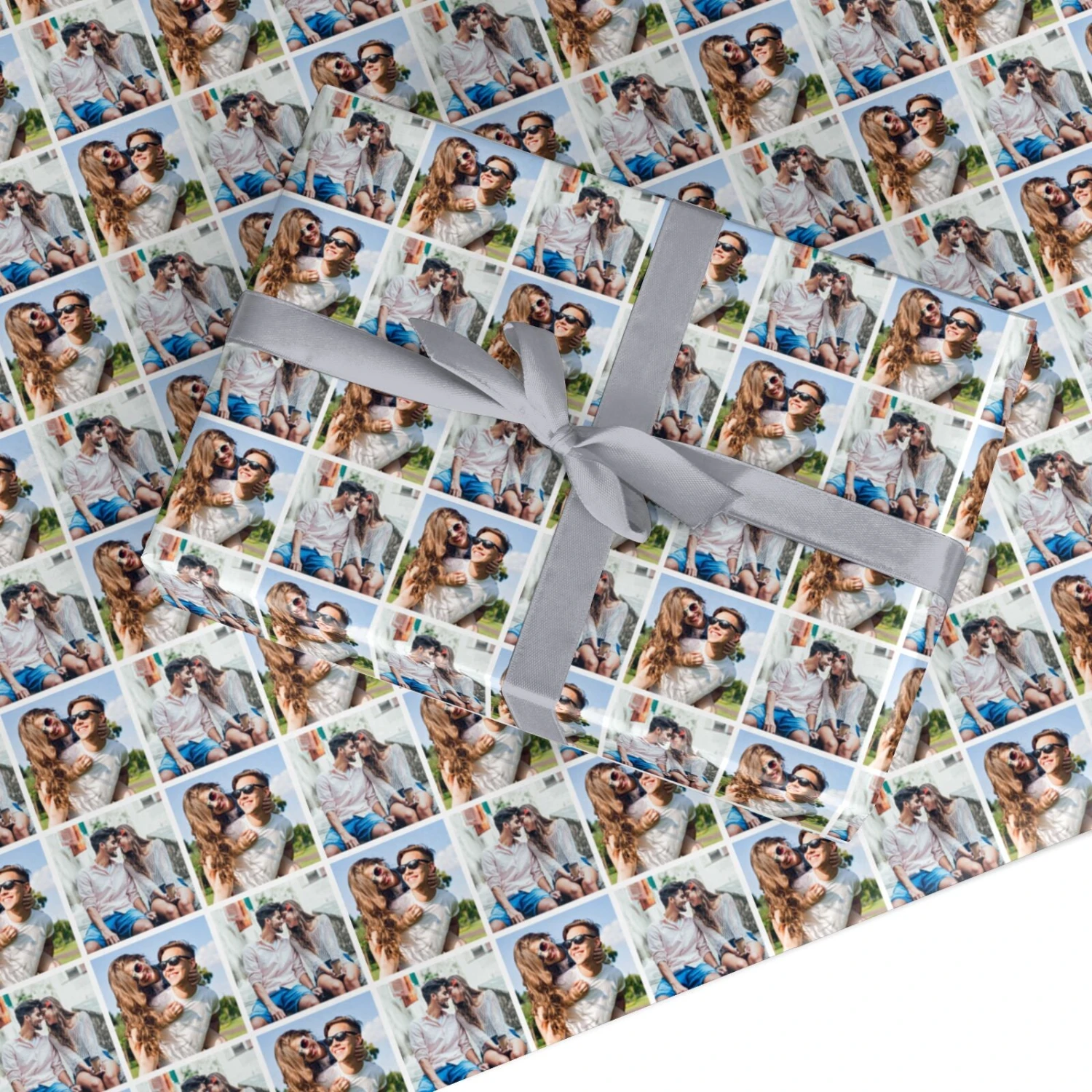 Personalised Two Photo Collage Wrapping Paper with cute grey