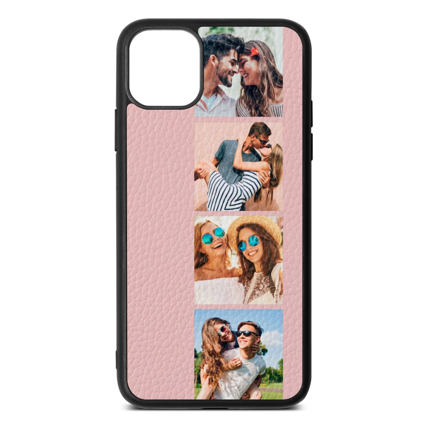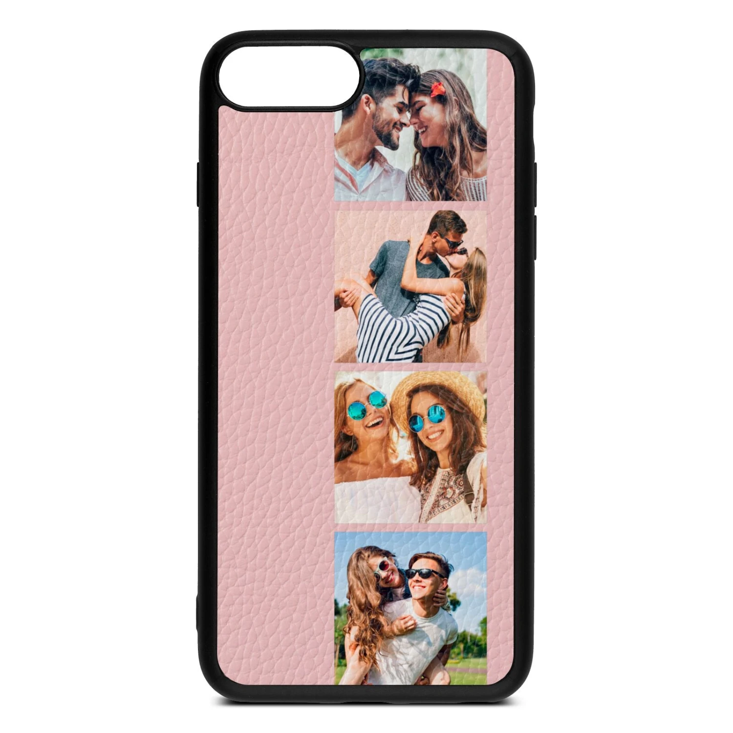 Photo Strip Montage Upload Pebble Leather Pink IPhone Case