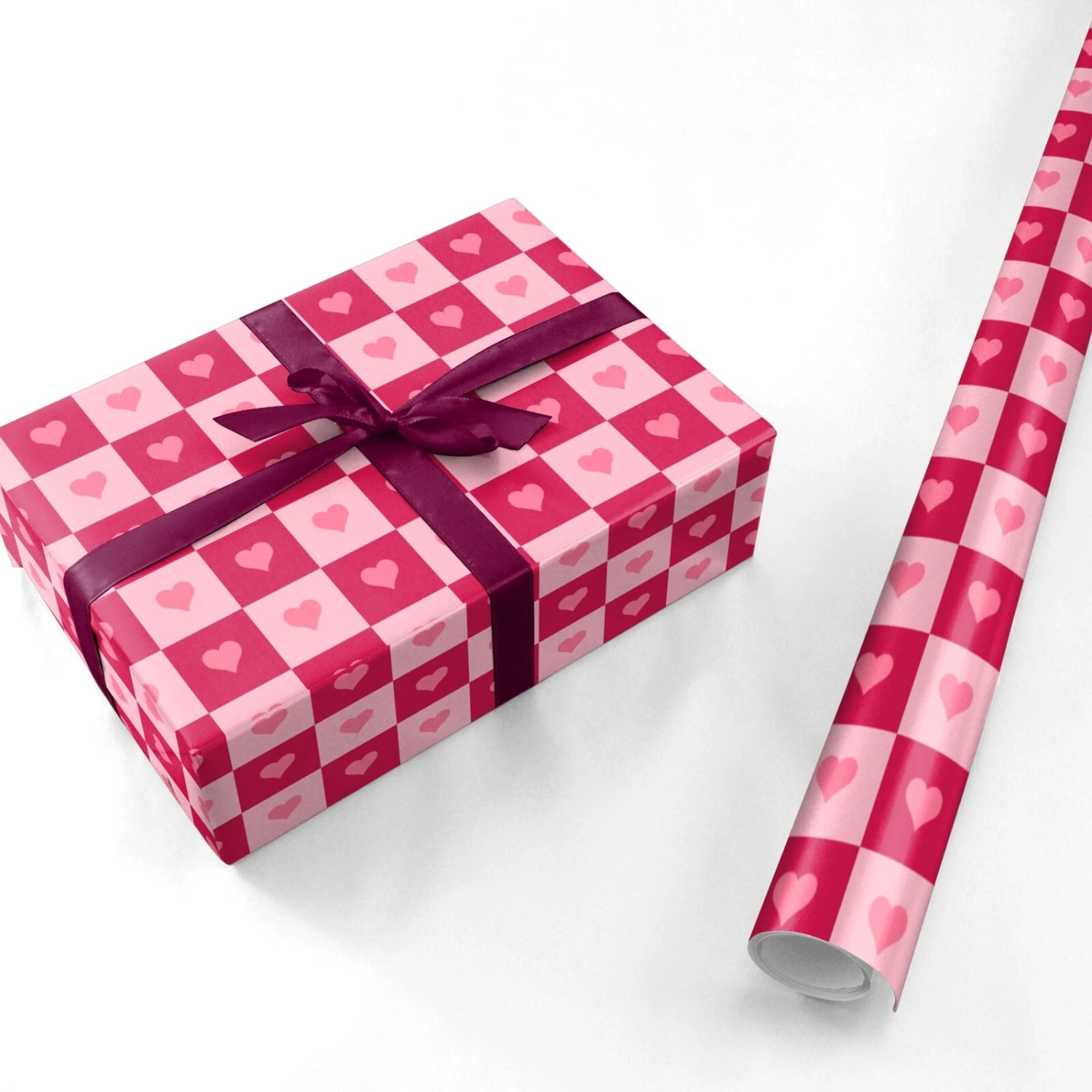 Celebrate love and joy with this charming pink and red checkerboard heart wrapping paper. Featuring alternating squares of soft pink and bold red, each adorned with adorable hearts, this design brings a playful and romantic touch to any gift. Perfect for Valentine’s Day, birthdays, or heartfelt celebrations, it adds a vibrant and loving vibe to your presents. Wrap your gifts with a design that expresses warmth, affection, and a cheerful aesthetic for every occasion.