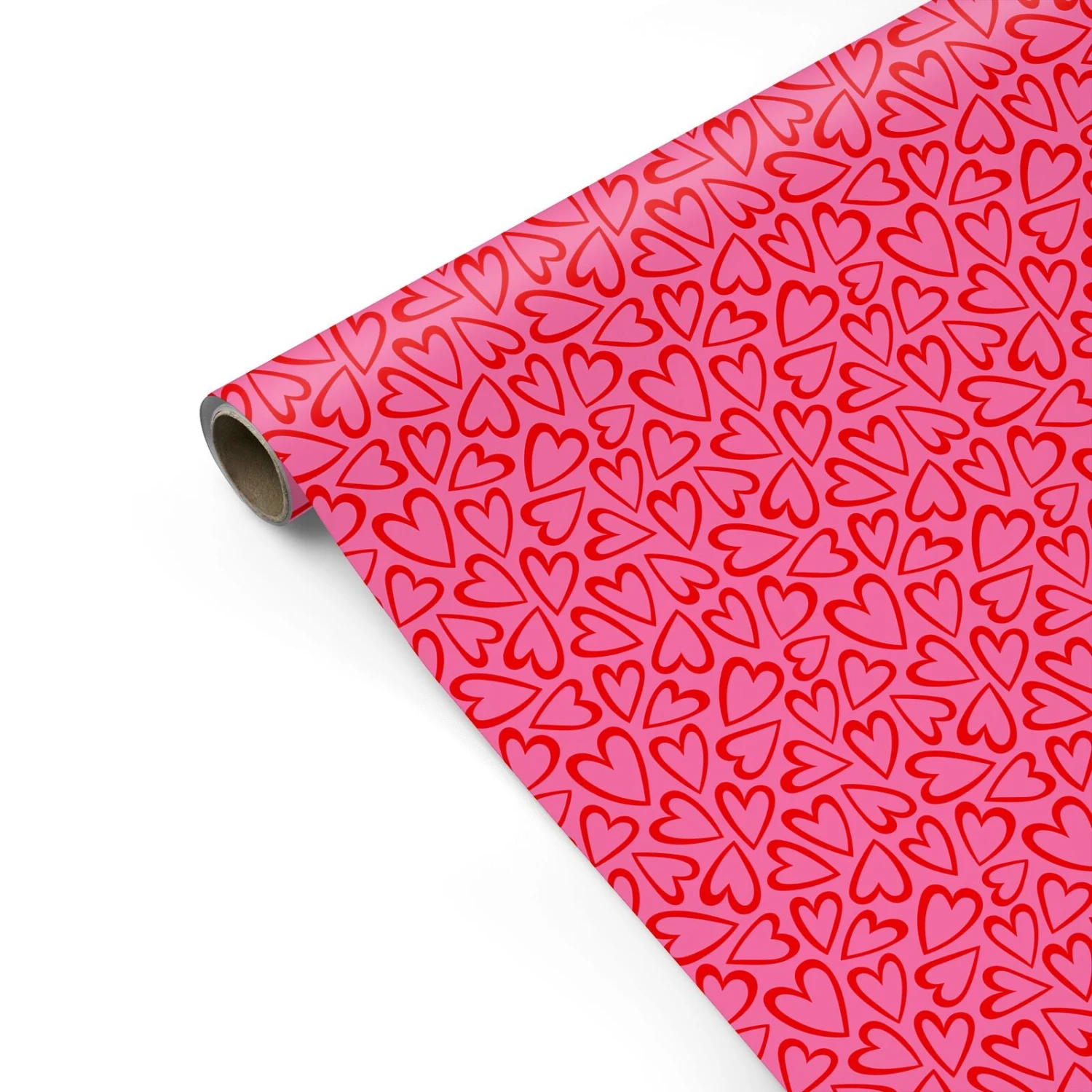 This vibrant pink and red love heart wrapping paper is the perfect choice for celebrating love and romance. Featuring a playful heart doodle pattern set against a bold backdrop, this design radiates warmth and affection.