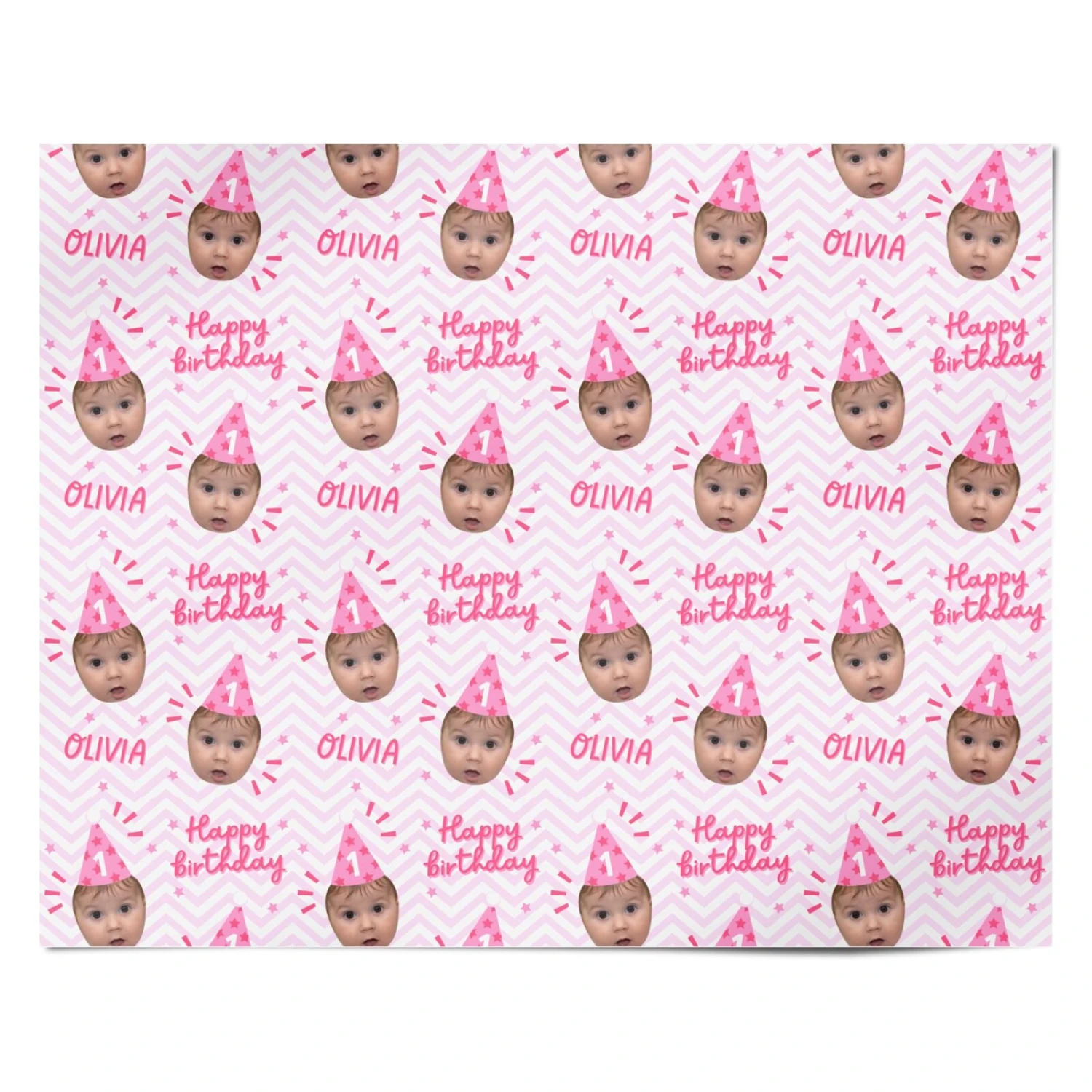 Our Pink Happy Birthday Personalised Face Wrapping Paper is a fun gift wrap design for any girls birthday. The design allows you to upload a face of your choice, and have it topped with a birthday hat. Add the name of the birthday girl to complete. Add matching gift tags and banners to complete the party decor.