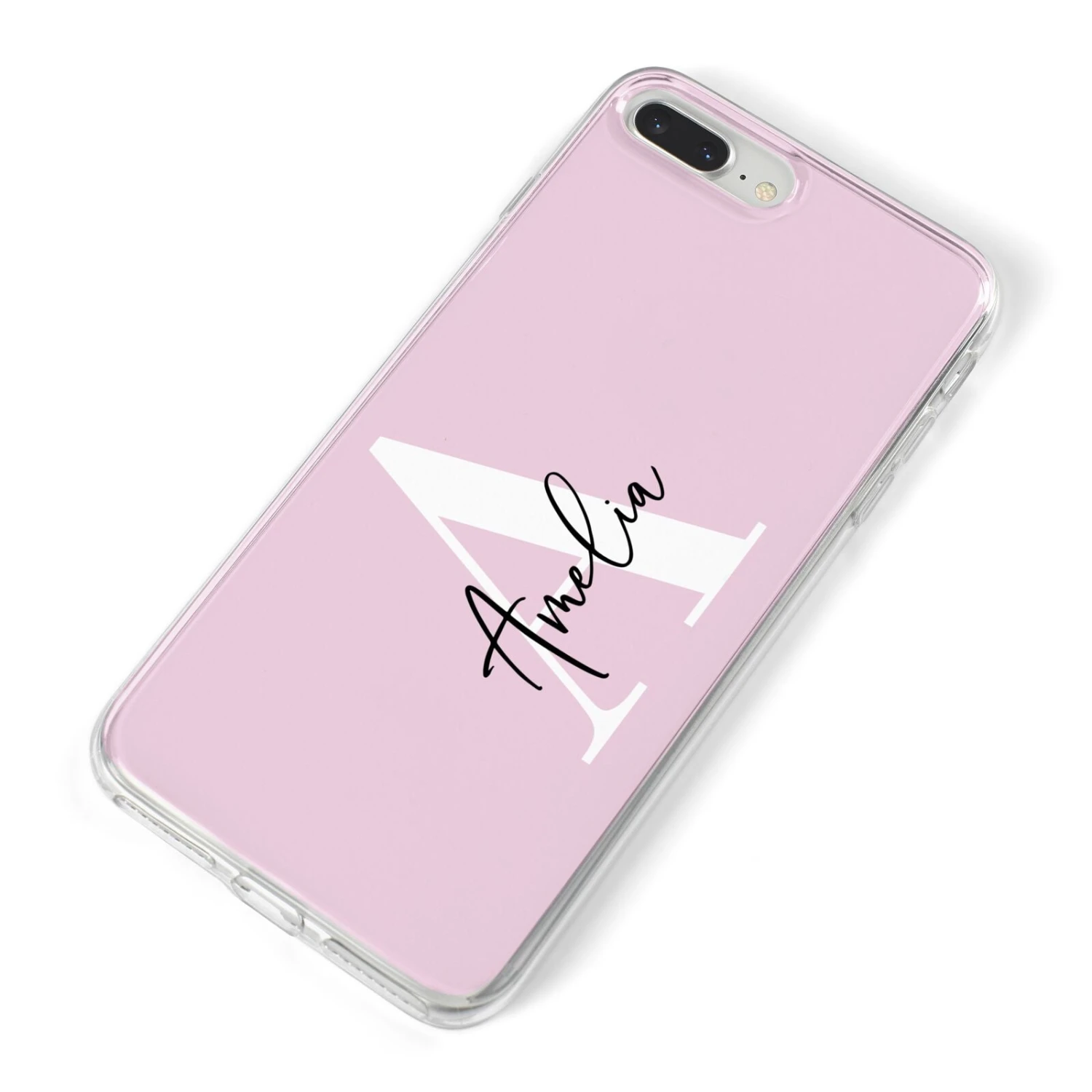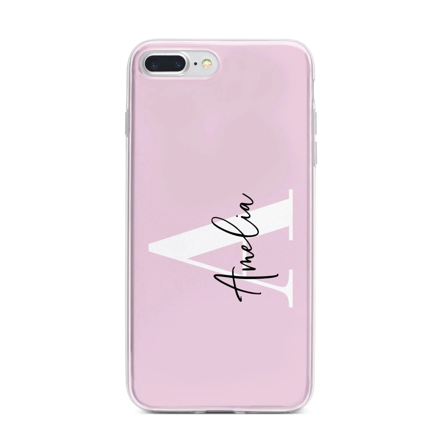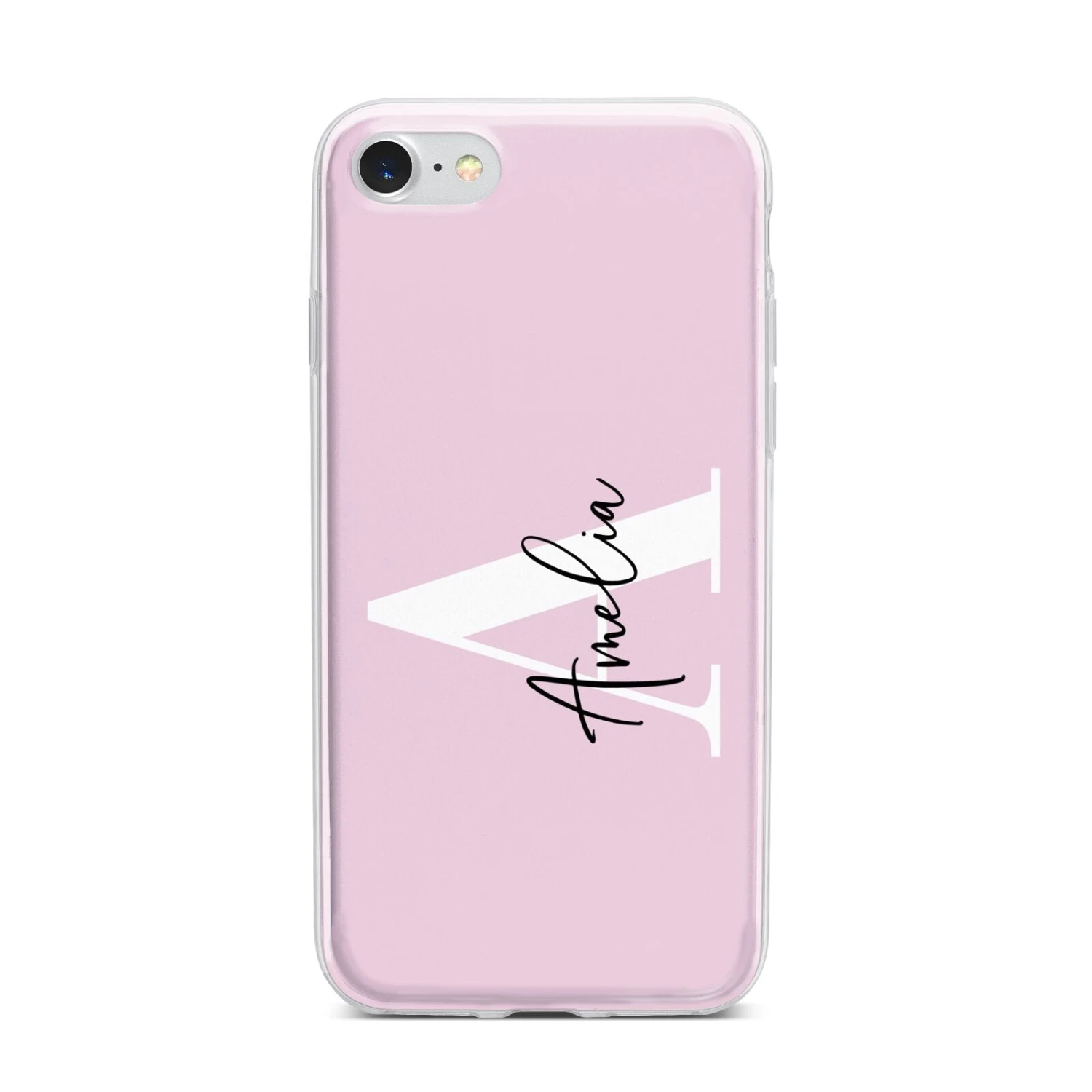 Super girly Apple iPhone Case, pink with a fully personalised initial and name space! This adorable personalised phone case is sure to show off your girly side with a solid pastel pink background. It features a fully customisable initial and name space. The initial is a solid, bold, white font that is sure to make you stand out from the crowd, with the customisable name space being in a cute, cursive font, black font. Shout your name and your diva style from the rooftops with this ultra feminine phone case!
