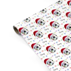 Personalised Merry Christmas Boys Football Santa Hat Wrapping Paper