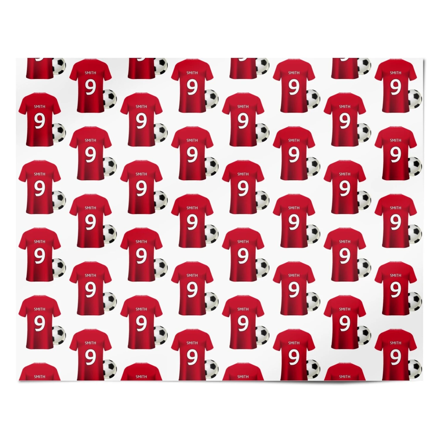 Our Red Personalised Football Shirt Name Number Wrapping Paper is perfect for any reds fan. Add the name and age of the birthday boy or girl to make it your own.