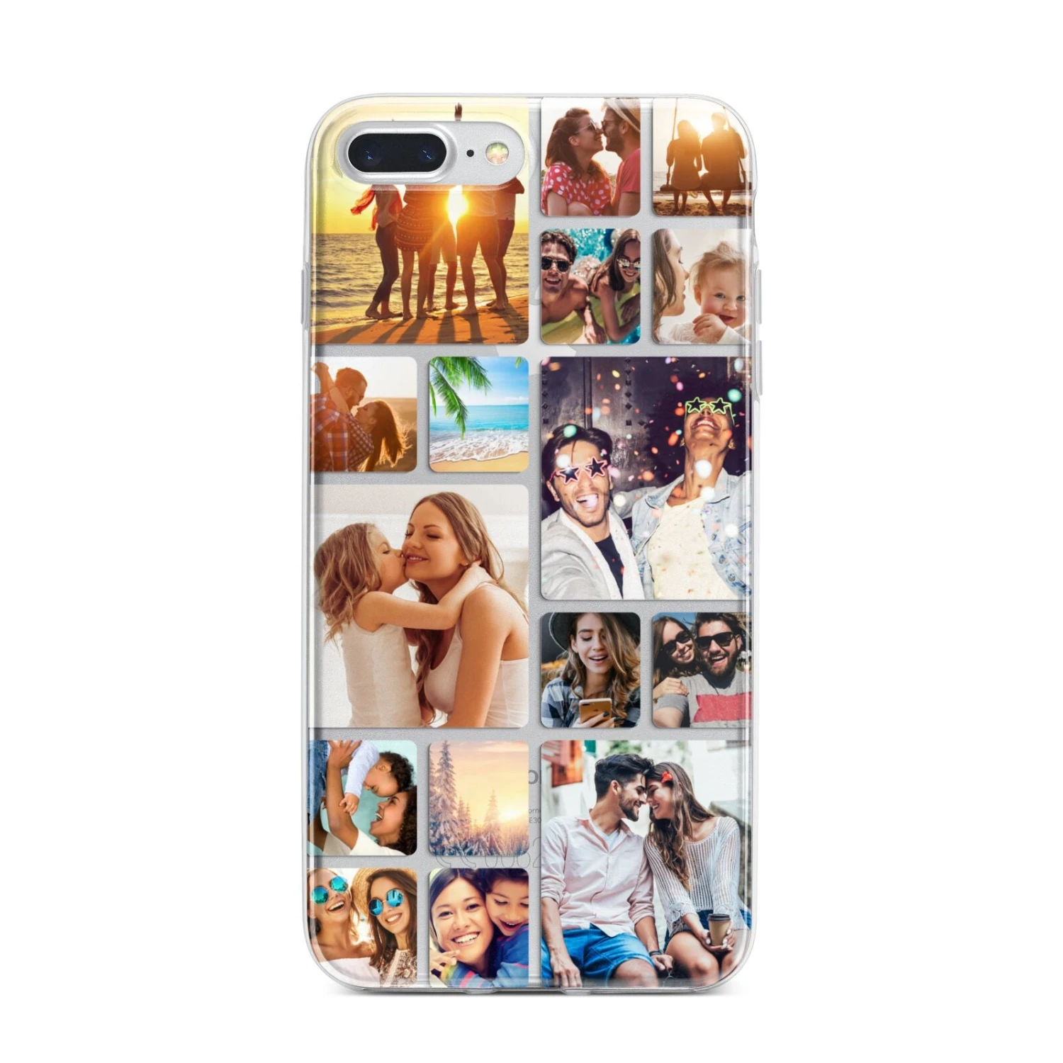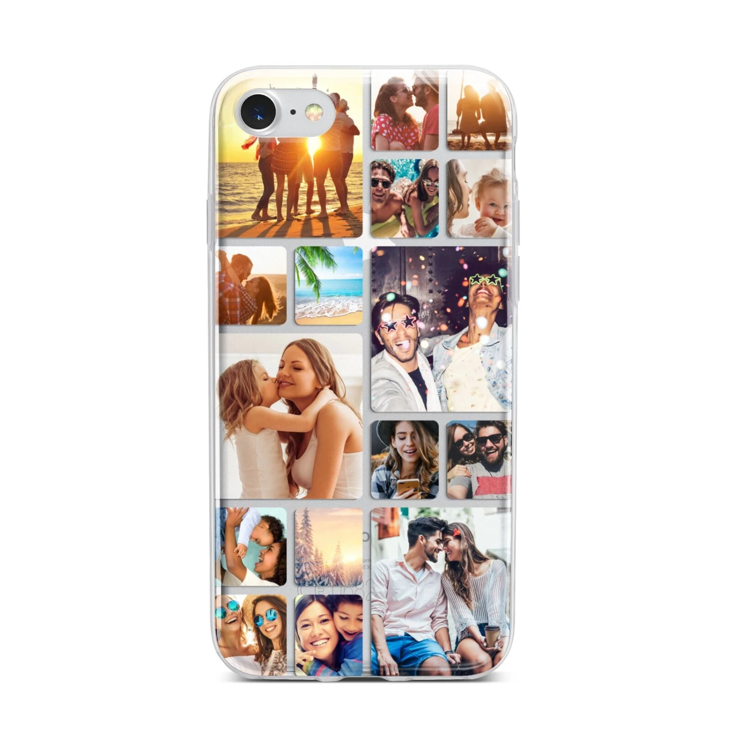 Our Round-Edged Photo Montage Upload Apple iPhone Case makes a great thoughtful gift for a loved one, or even a lovely treat for yourself. With the phone case design featuring a collage of 16 your favourite photographs, this one-of-a-kind piece is always guaranteed to make you smile. With our easy-to-use online photo editor, you can then use a live preview tool to crop and position your pictures so that they fit exactly into your design. What’s more, because the grid design features a transparent background, you can see your device through the photos and clear case.
