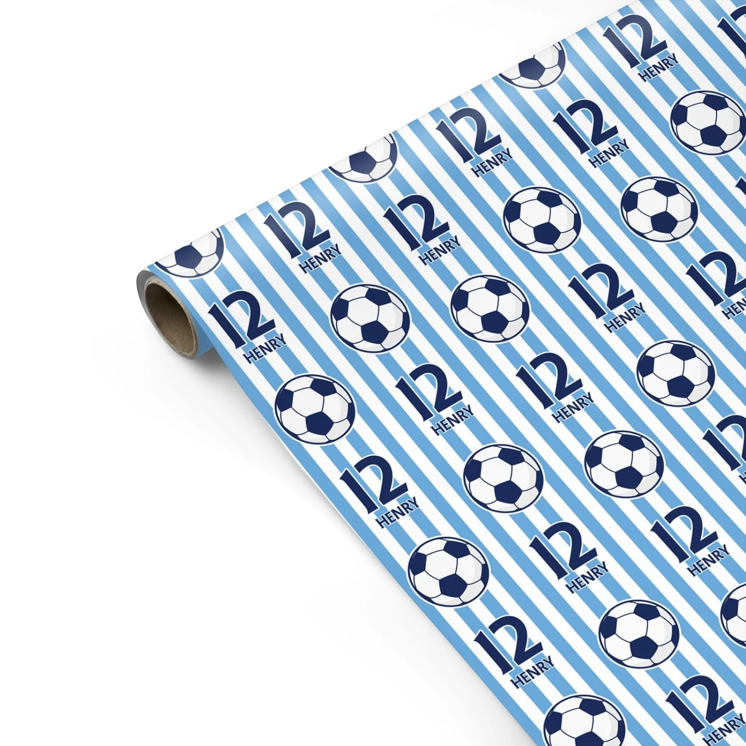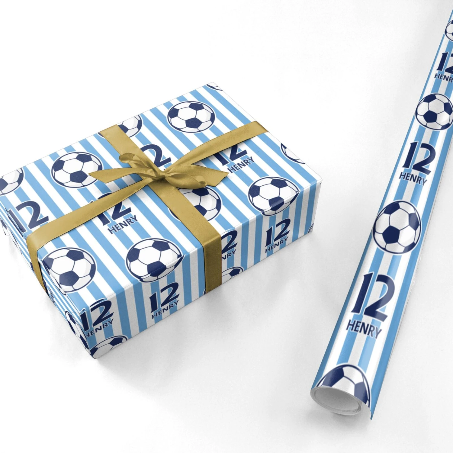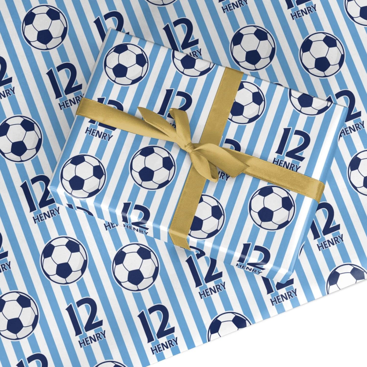 Celebrate football fandom with this sky blue personalised football wrapping paper, custom printed with your chosen name and number. Featuring bold stripes, classic football motifs, and a sporty design, it’s the ultimate way to wrap gifts for football lovers of all ages. Whether it’s for a birthday, Father’s Day, or a special match day surprise, this custom gift wrap scores big with fans. Perfect for boys, dads, and football enthusiasts, it’s a winning touch for any occasion!