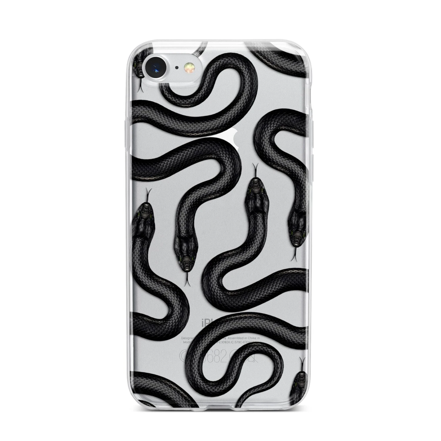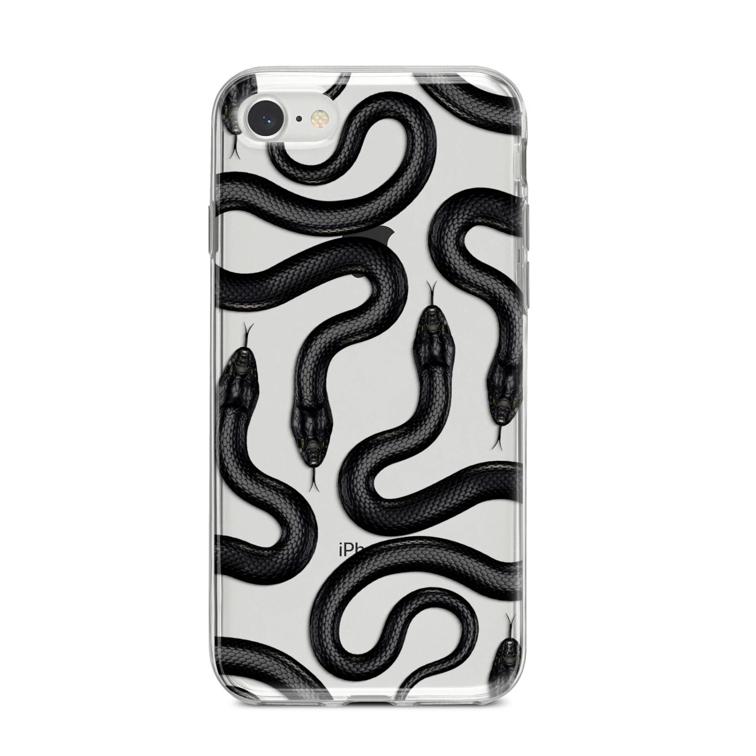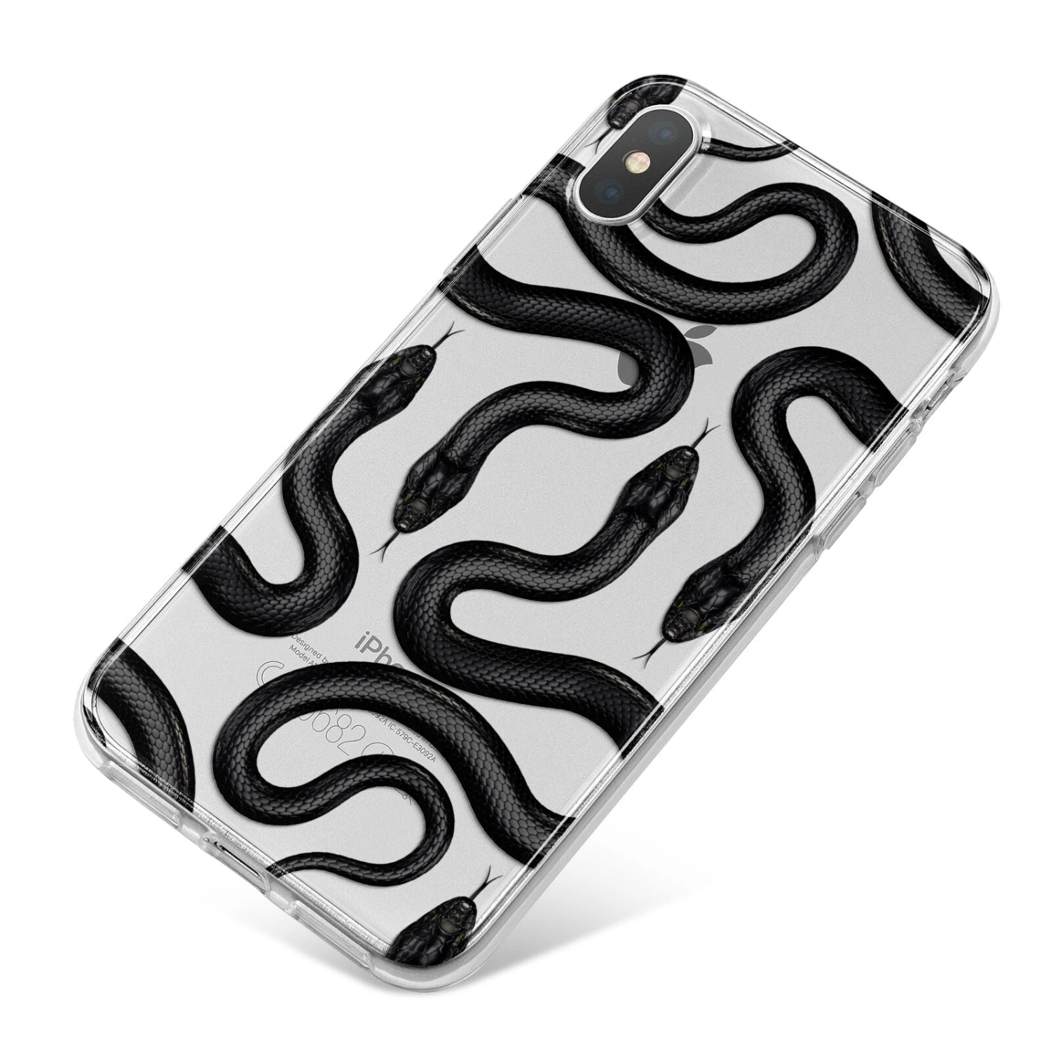Introducing our Snake Pattern phone case. A bold and on trend design that is sure to set your phone apart from the crowd. Team with the matching Snake accessories and complete your look. Featuring black snakes against a transparent background.