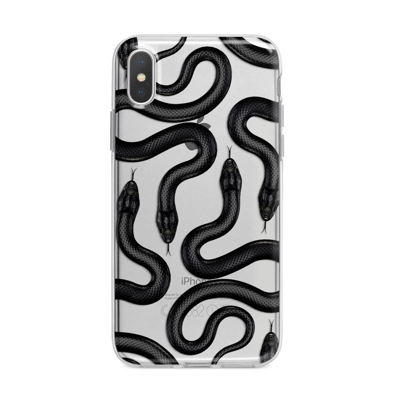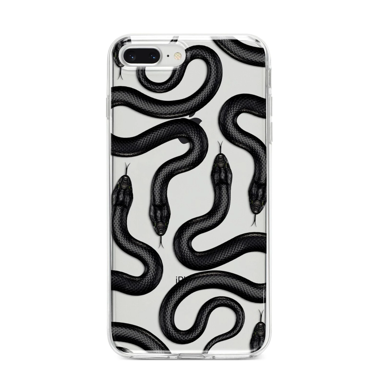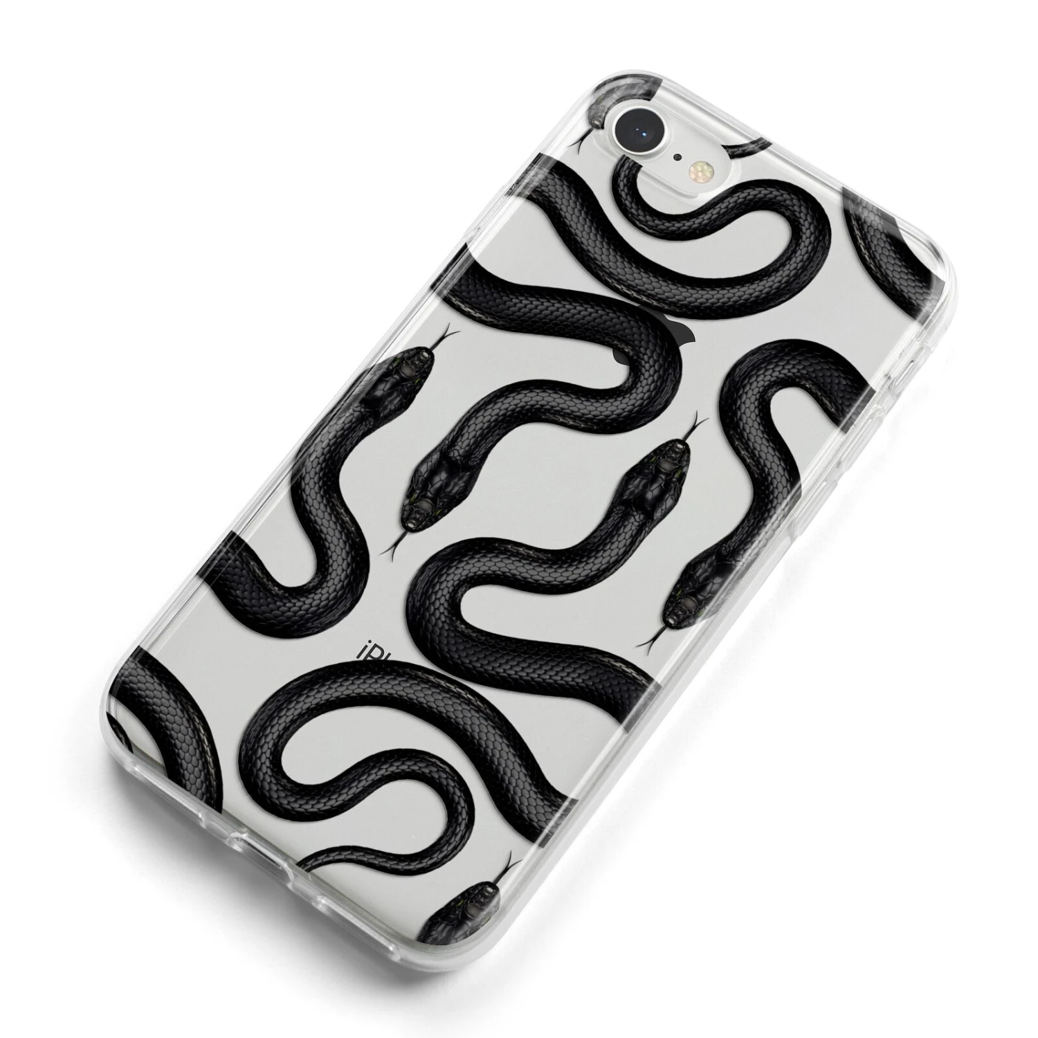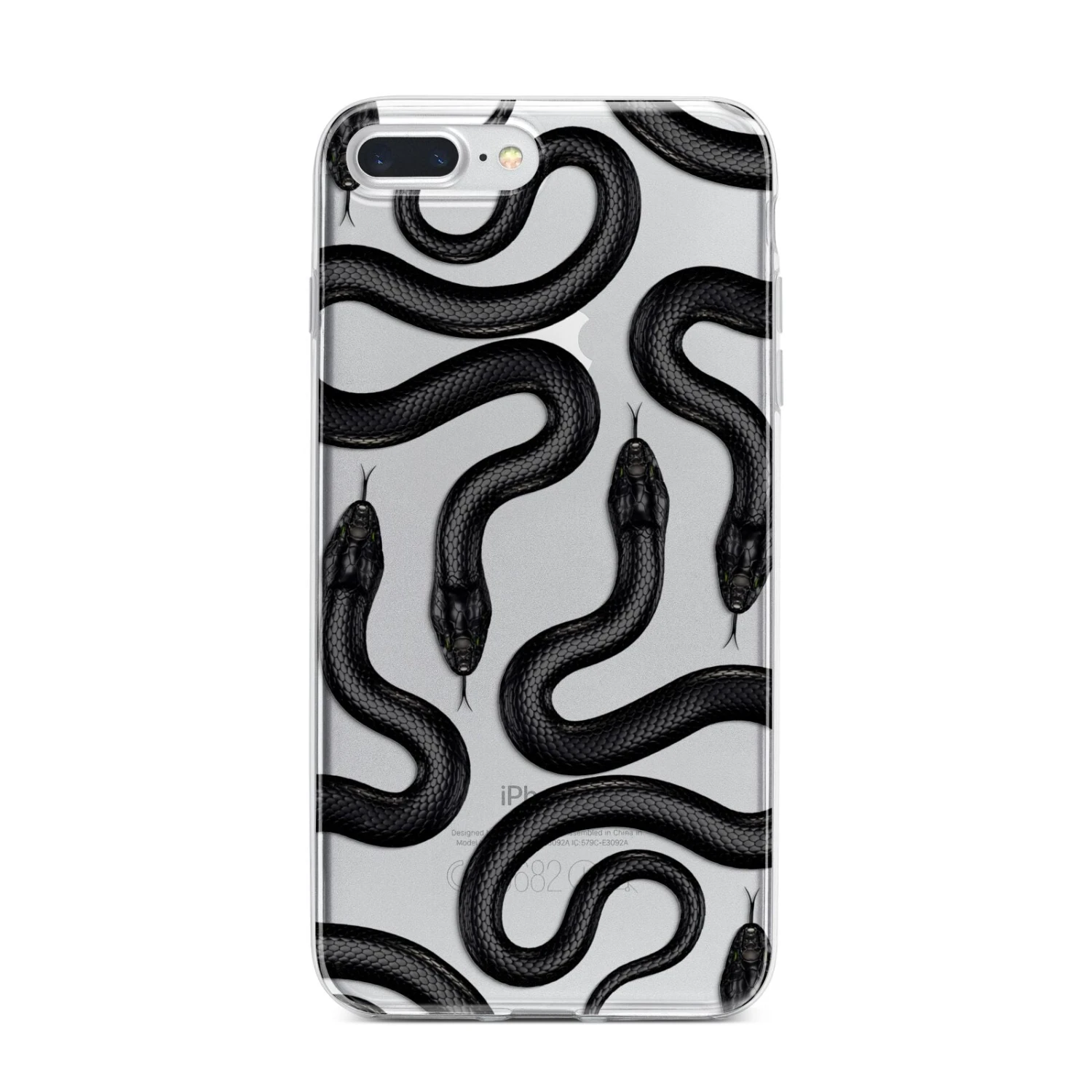 Introducing our Snake Pattern phone case. A bold and on trend design that is sure to set your phone apart from the crowd. Team with the matching Snake accessories and complete your look. Featuring black snakes against a transparent background.