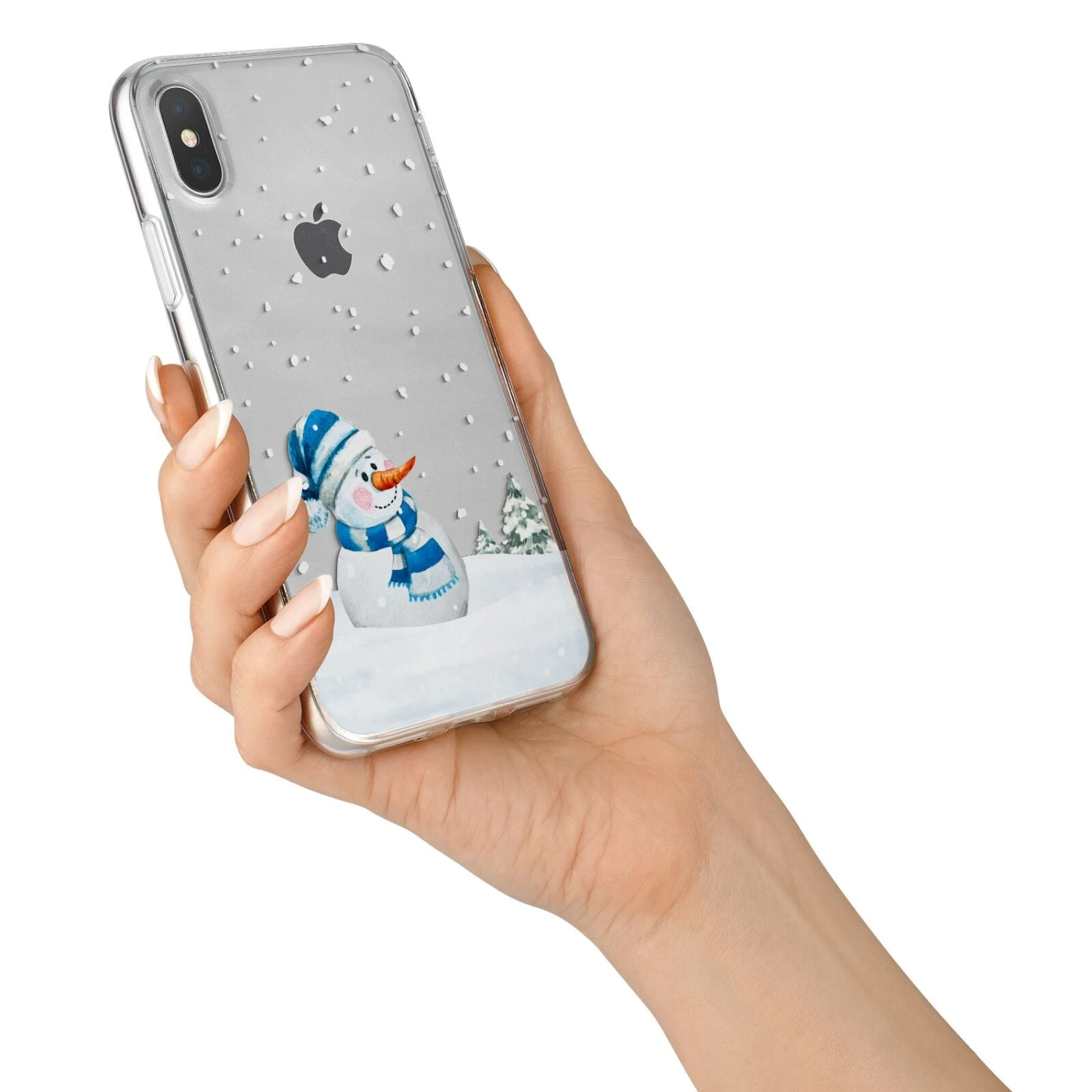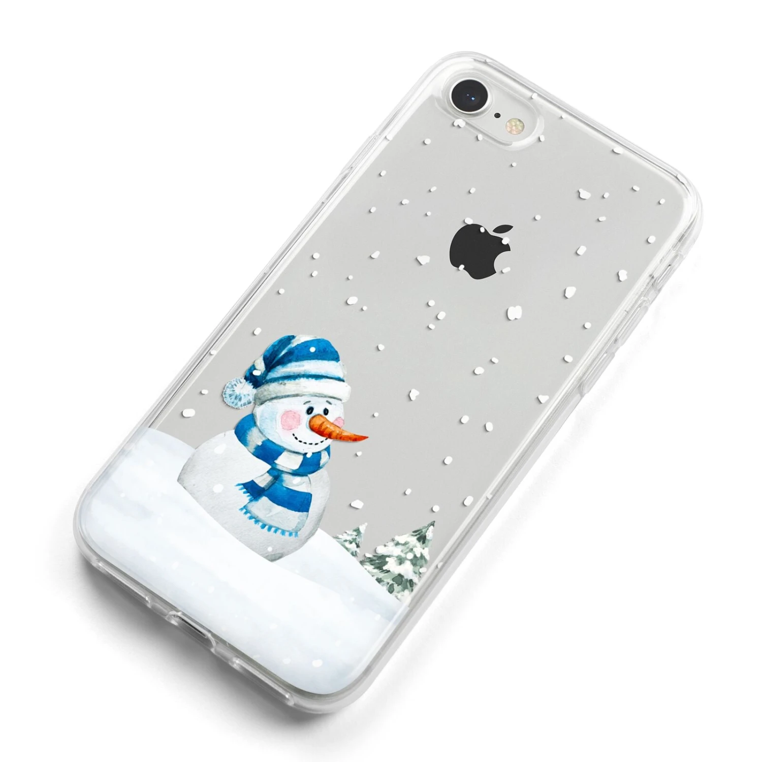 Our Snowman Apple iPhone Case is a watercolour illustration of a snowman, set against a snow filled background. A great way to get into the Christmas spirit. The transparent areas of the design look great when printed on our clear cases, as your device will show through.