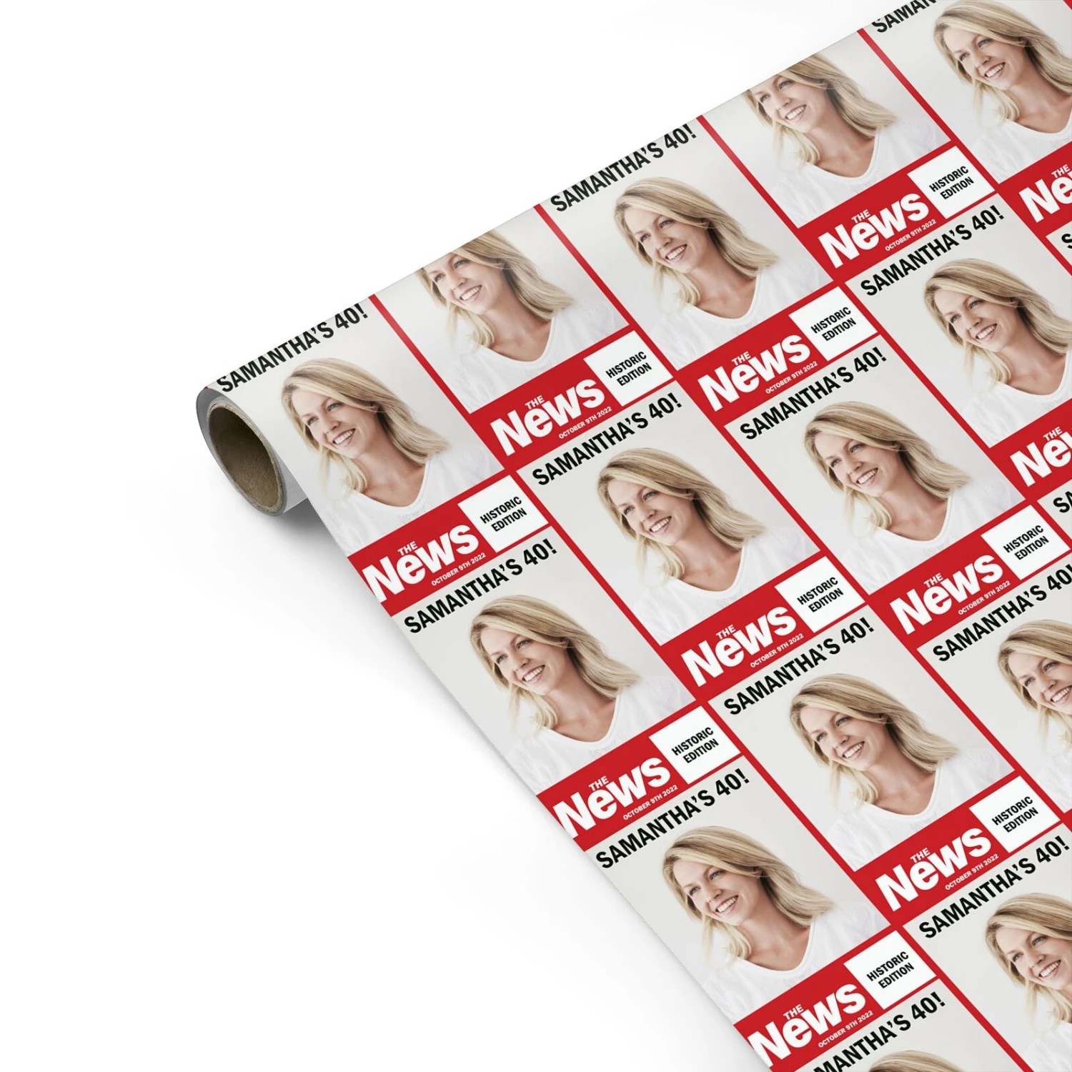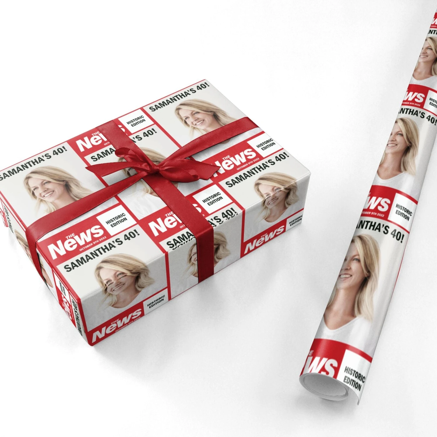 Our Spoof Newspaper Wrapping Paper is a fun take on a red top tabloid newspaper. Upload a photo, add some text and create your own headline for any friend or family member. A great way to send Birthday wishes.