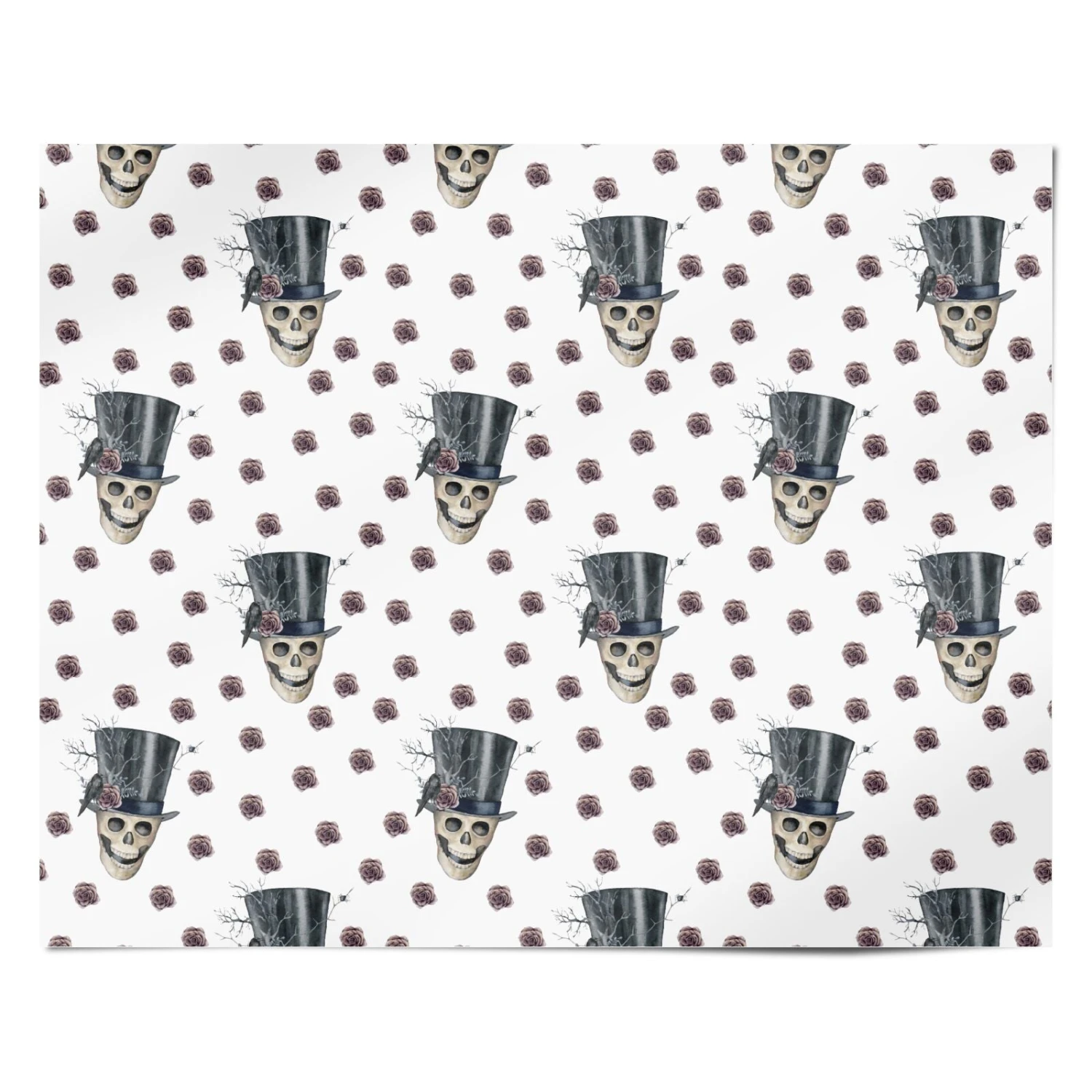 Death comes calling with this scary skull design, but he has dressed for the occasion in a smart top hat! The cheery-looking skull sports a large black top hat adorned with a dark purple rose, some withered thorny stems, and a cute big-eyed spider. Perfect for Halloween season. Sitting on the brim is a black crow, and more purple roses scattered around the image stand out against the transparent background. Drop dead gorgeous, or what?