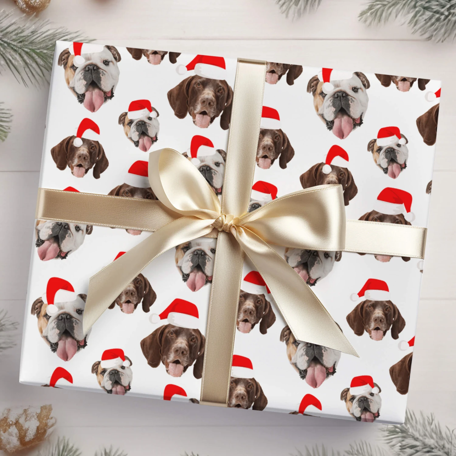 Make your gifts stand out this Christmas with personalised wrapping paper featuring your two beloved dogs. Upload two photos of your pups – any breed or coat colour works – and our smart tool will seamlessly cut out their faces, transforming them into a charming festive design complete with Santa hats.