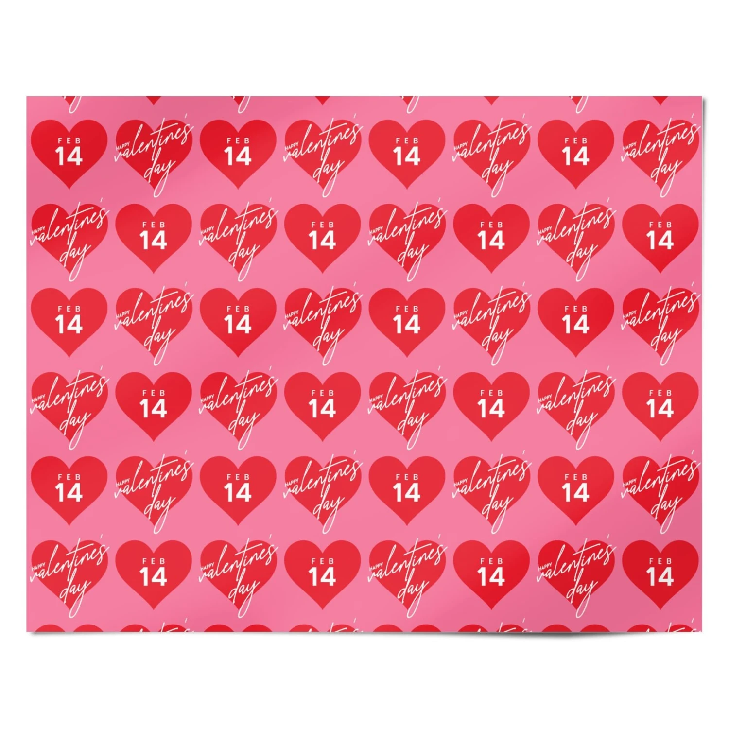Celebrate love with this charming Valentines Day wrapping paper, featuring a playful pattern of red hearts with the date February 14 elegantly scripted. Set against a romantic pink background, this design is perfect for wrapping gifts for your special someone. Whether it’s for your partner, a friend, or a loved one, this themed gift wrap adds a heartfelt touch to presents. Ideal for Valentine’s Day, anniversaries, or any romantic occasion.