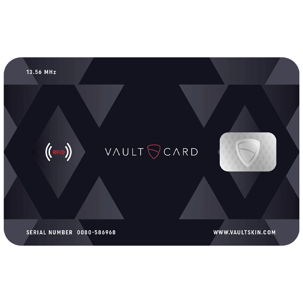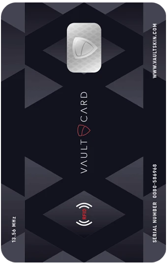 RFID Blocking Card – VAULTCARDâ„¢ – advanced protection against RFID fraud, jams out and blocks RFID skimming systems, shielding credit and debit cards and keeps personal data safe.