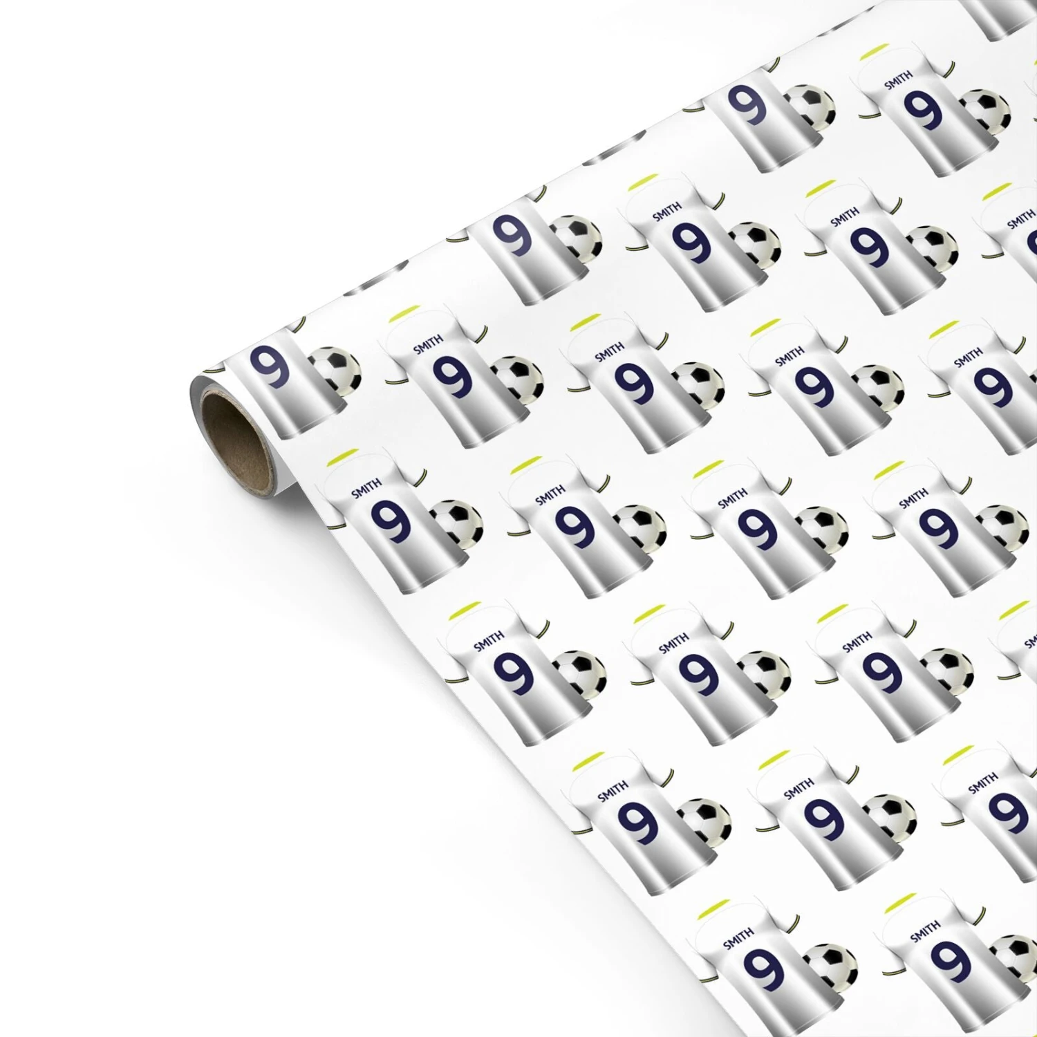 Our White Football Shirt Personalised Wrapping Paper is ideal for birthday boys or girls and can be customised with a name and number, or the age of the recipient.